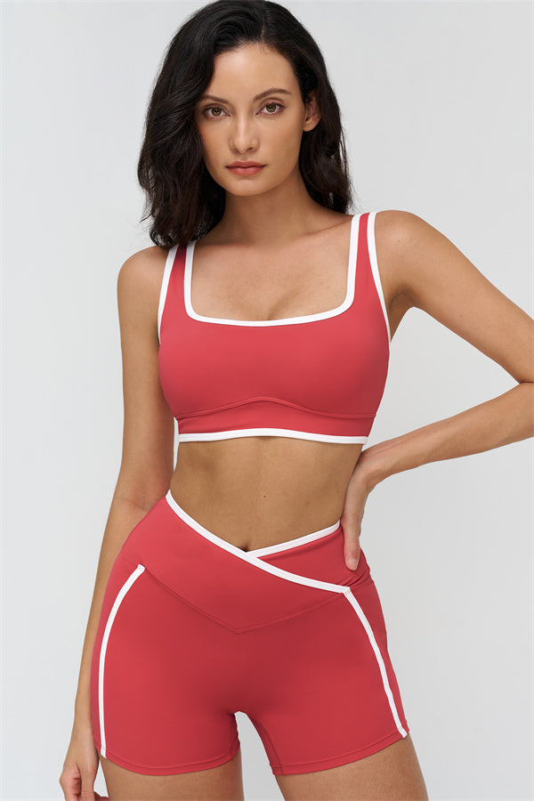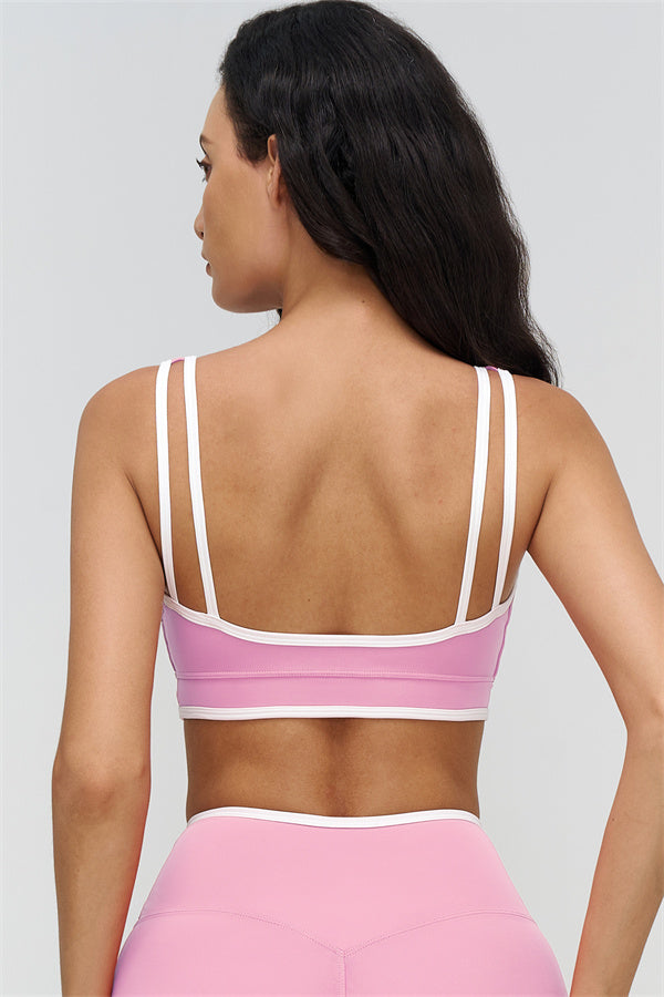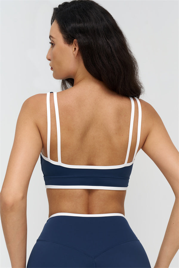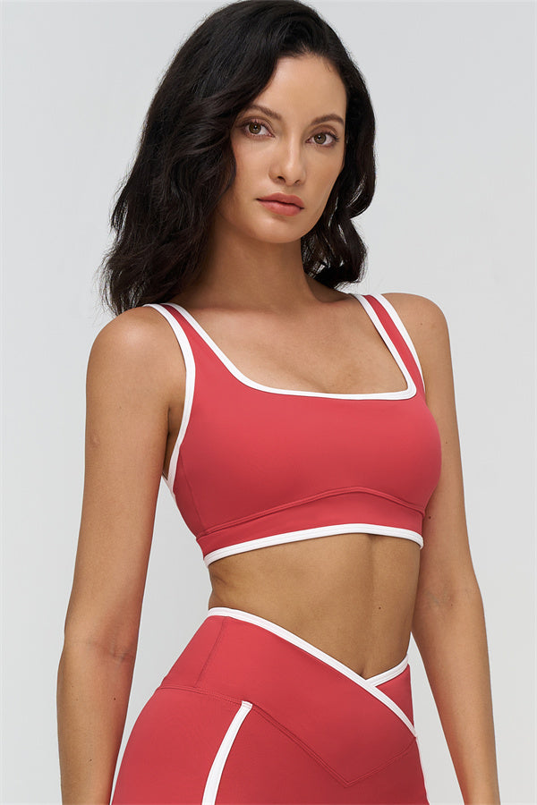 Elevate your workout wardrobe with The Crave Sports Bra, designed to highlight your curves while providing comfort and support. The wide neckline showcases your collarbones, and the removable padding allows for versatile wear from gym to street.