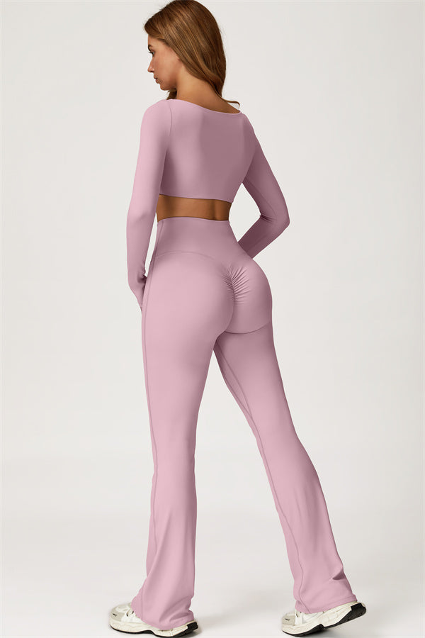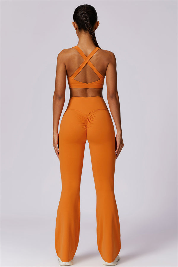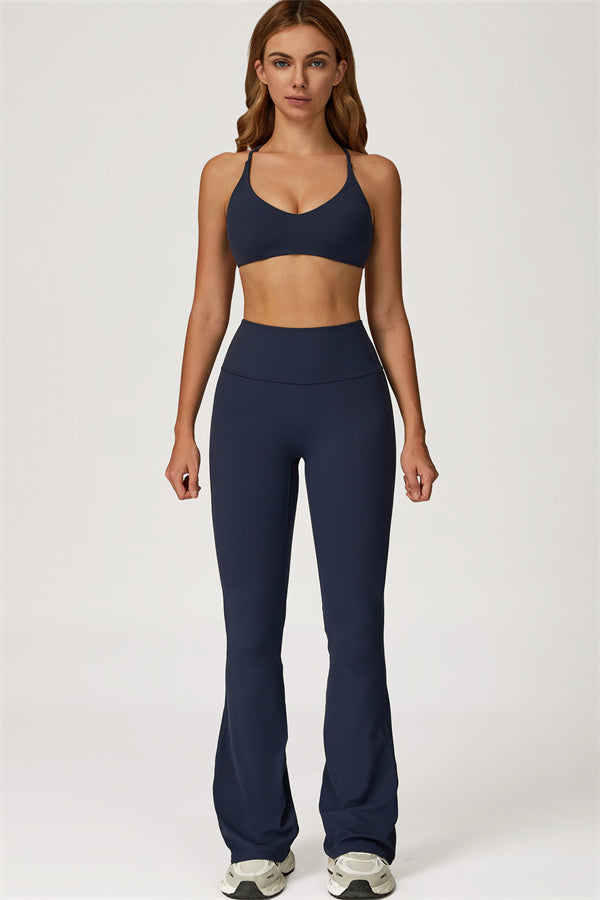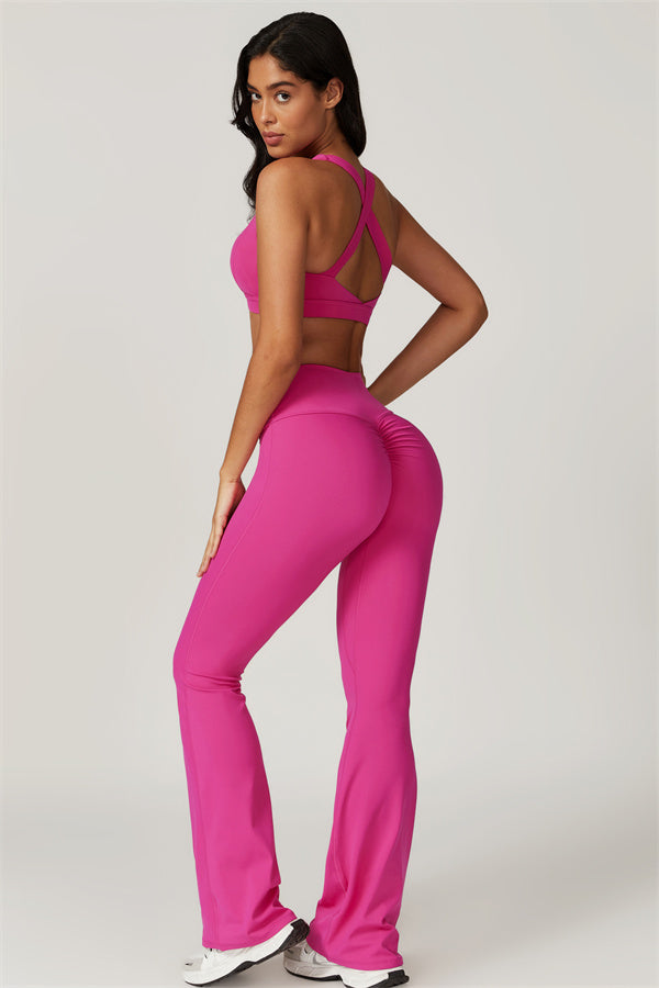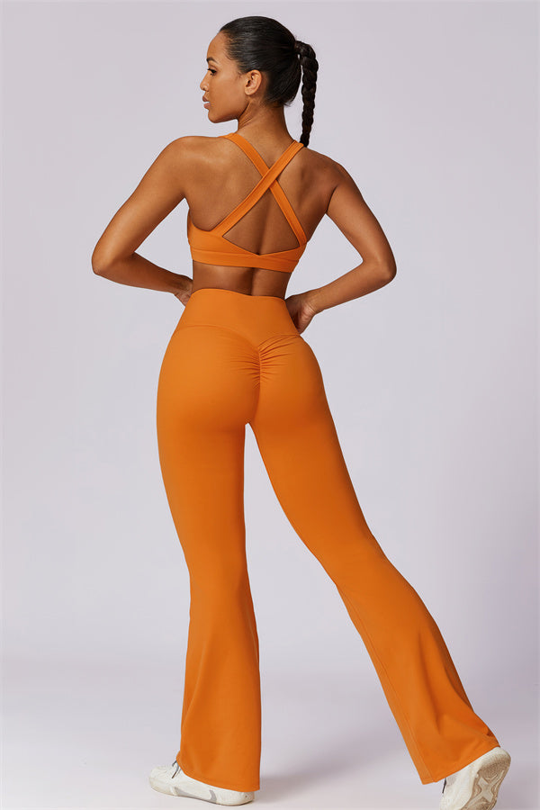 Introducing our stylish flared leggings, designed to enhance your leg lines and create a flattering silhouette. The unique tapered design helps lift and shape your rear, giving you a fuller, more defined look.
