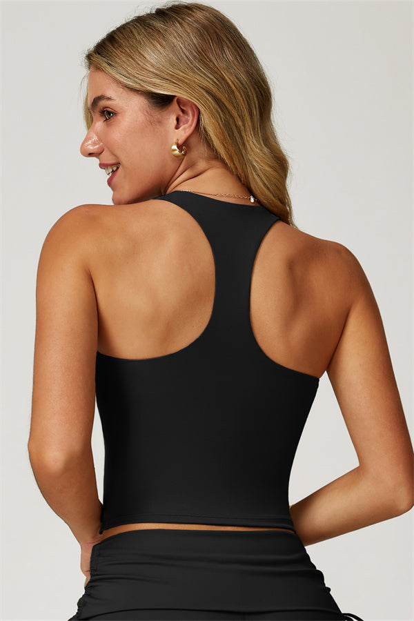 • Racerback cut shows off the upper back and butterfly bones
