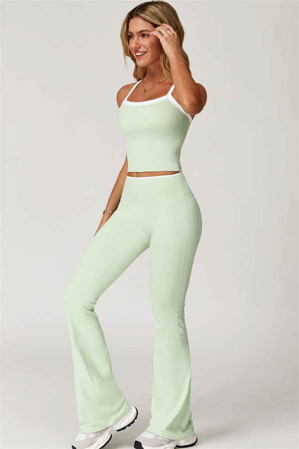 The Quest Cross Back Crop Top Flared Leggings 2-Piece Set