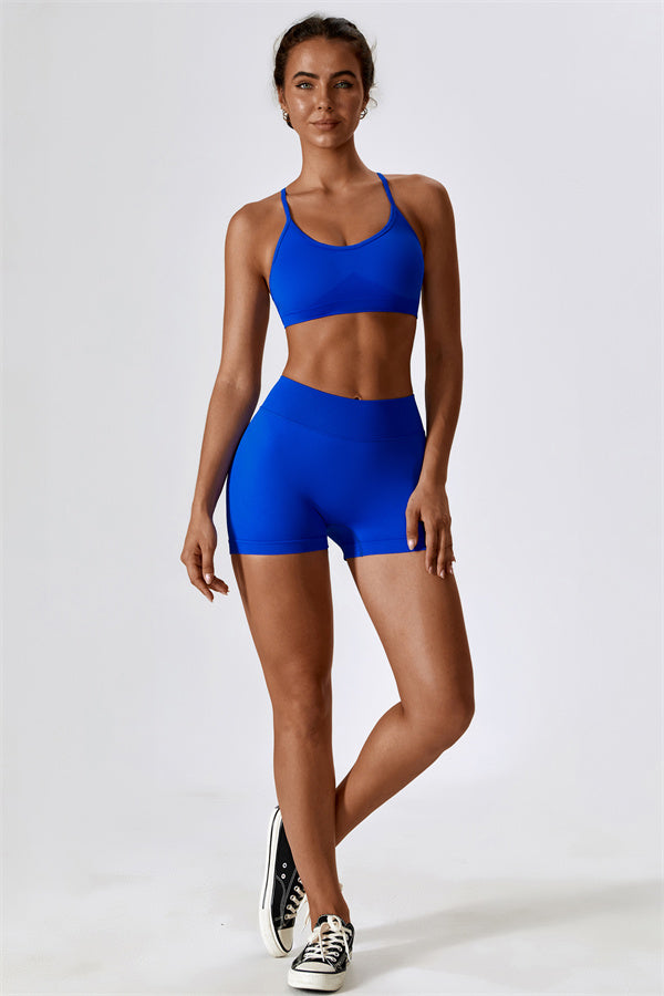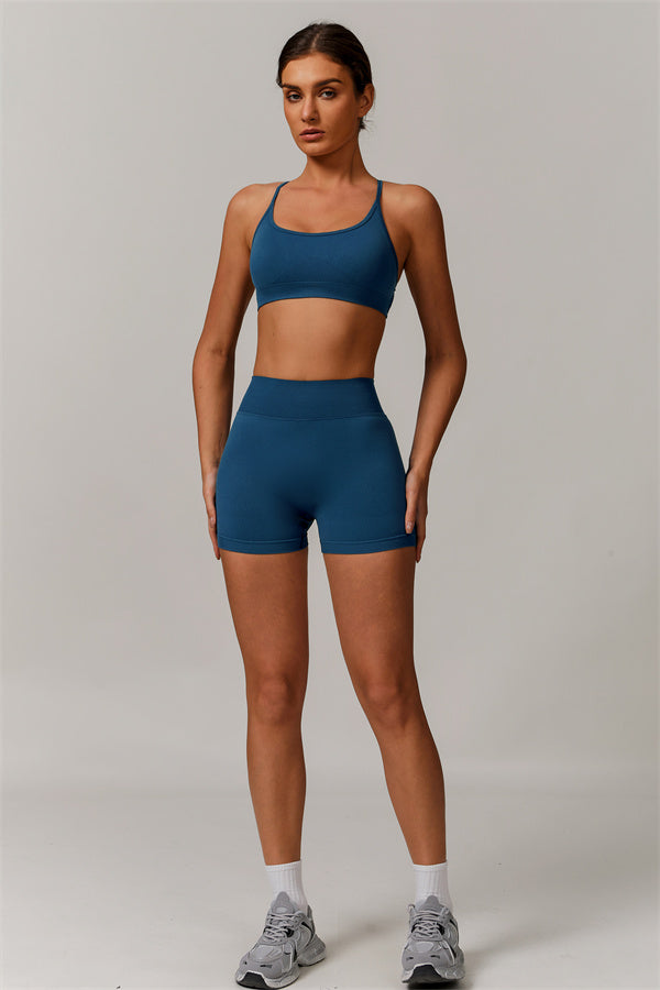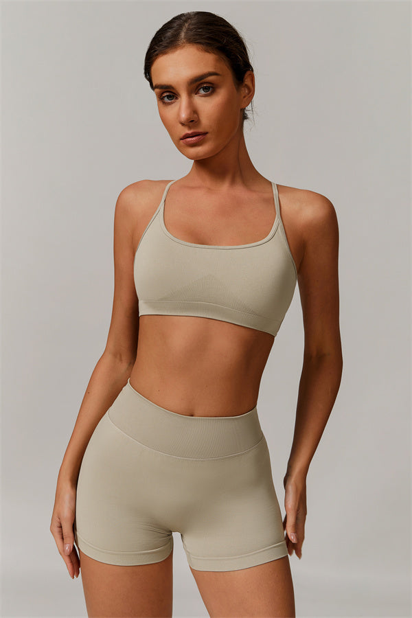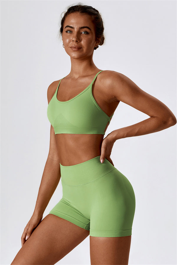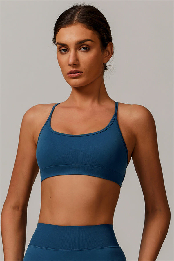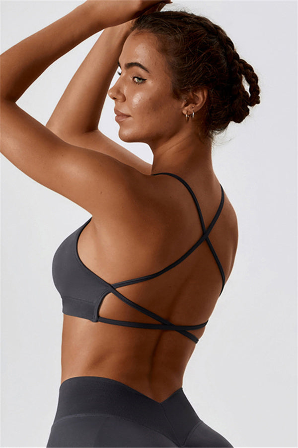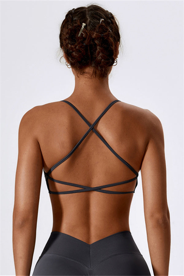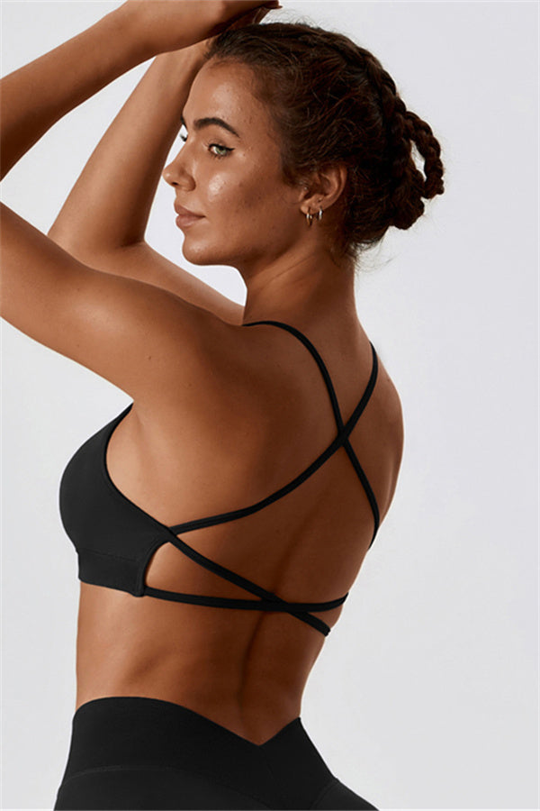 Introducing our U-neck sports bra, thoughtfully designed to enhance your shoulder and neck lines. The delicate cross-back straps elegantly highlight your shoulder blades, adding a touch of sophistication to your activewear collection.