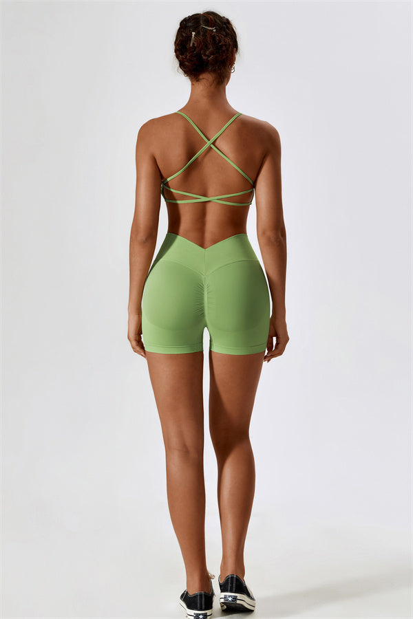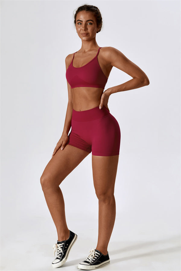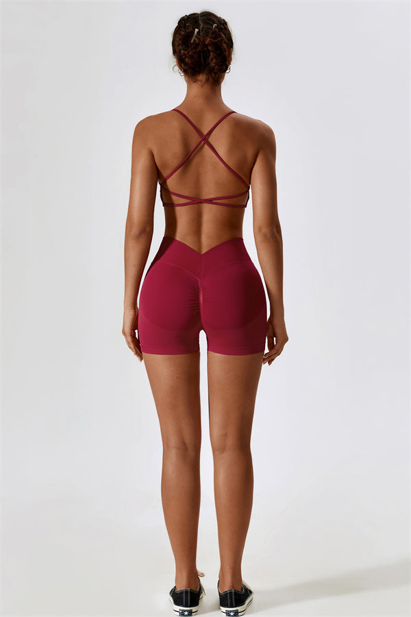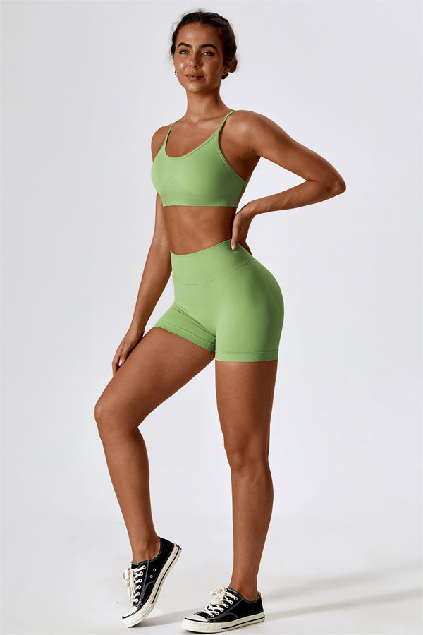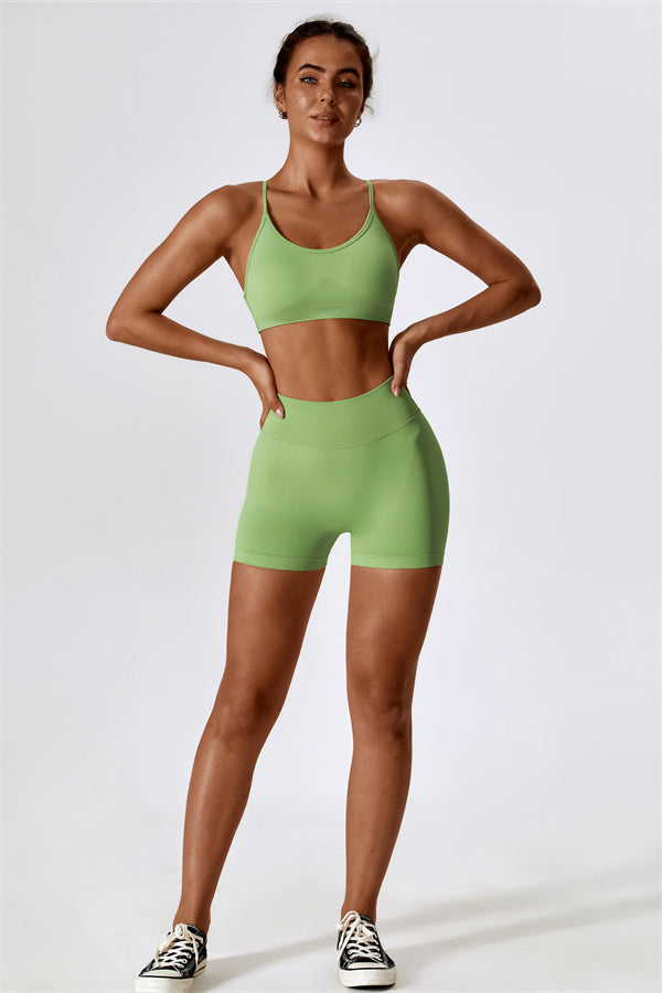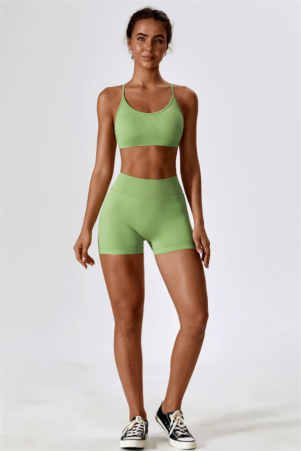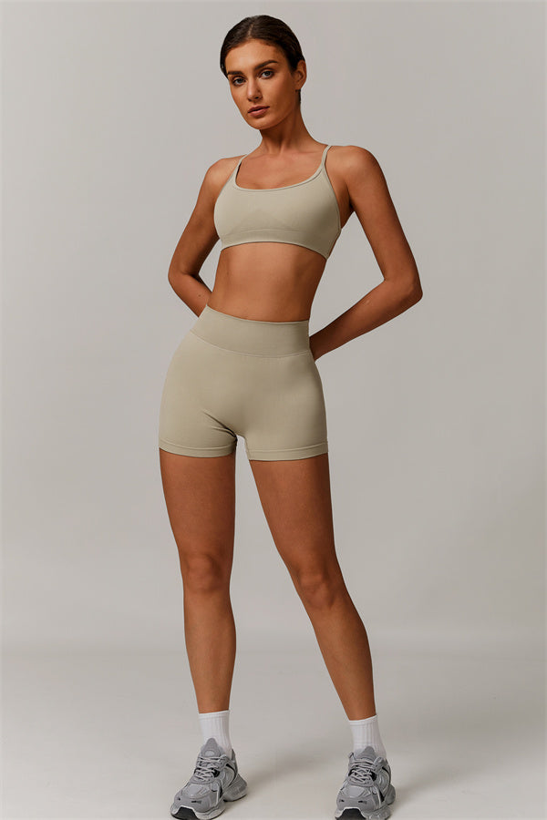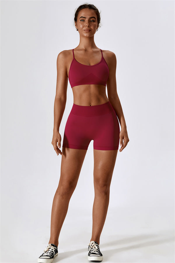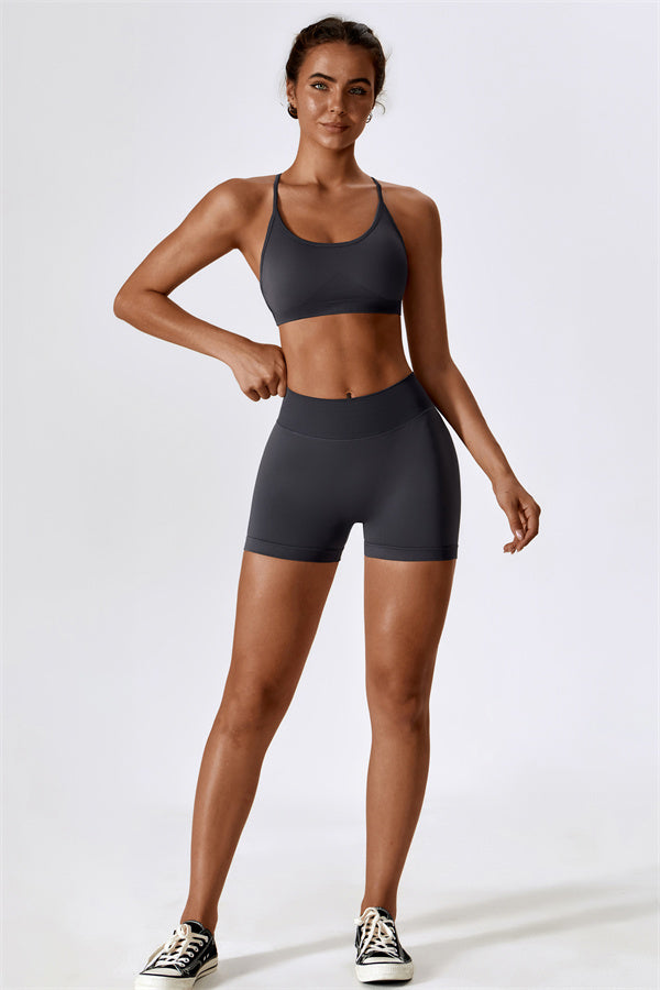 Introducing our U-neck sports bra, thoughtfully designed to enhance your shoulder and neck lines. The delicate cross-back straps elegantly highlight your shoulder blades, adding a touch of sophistication to your activewear collection.