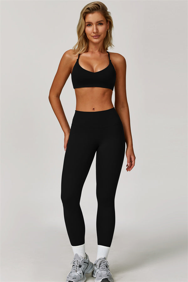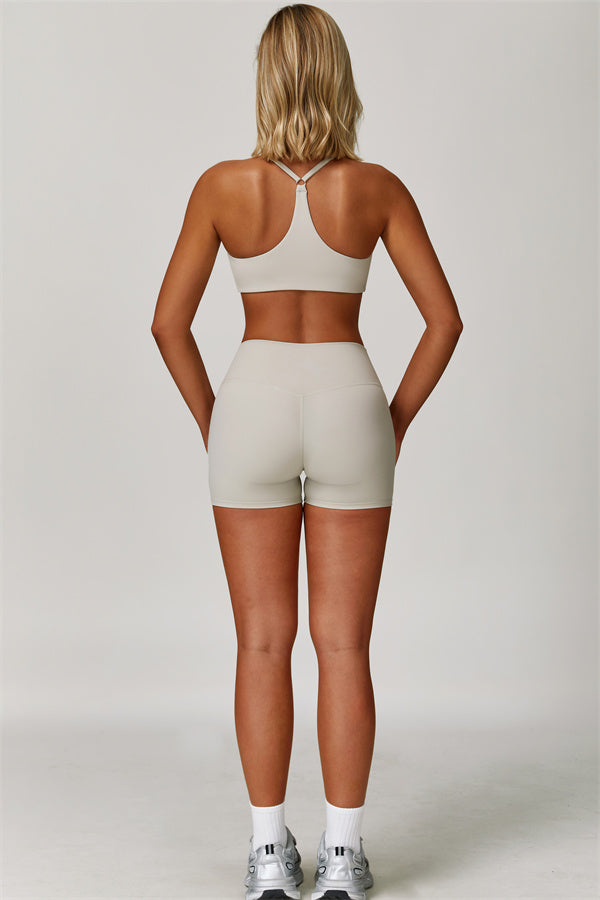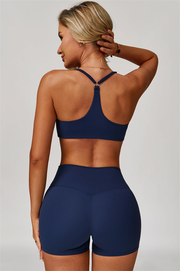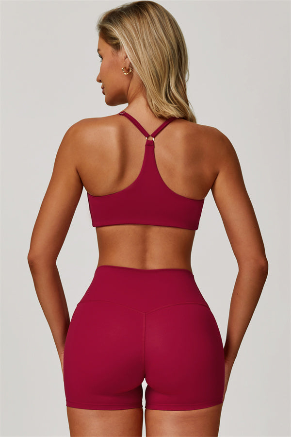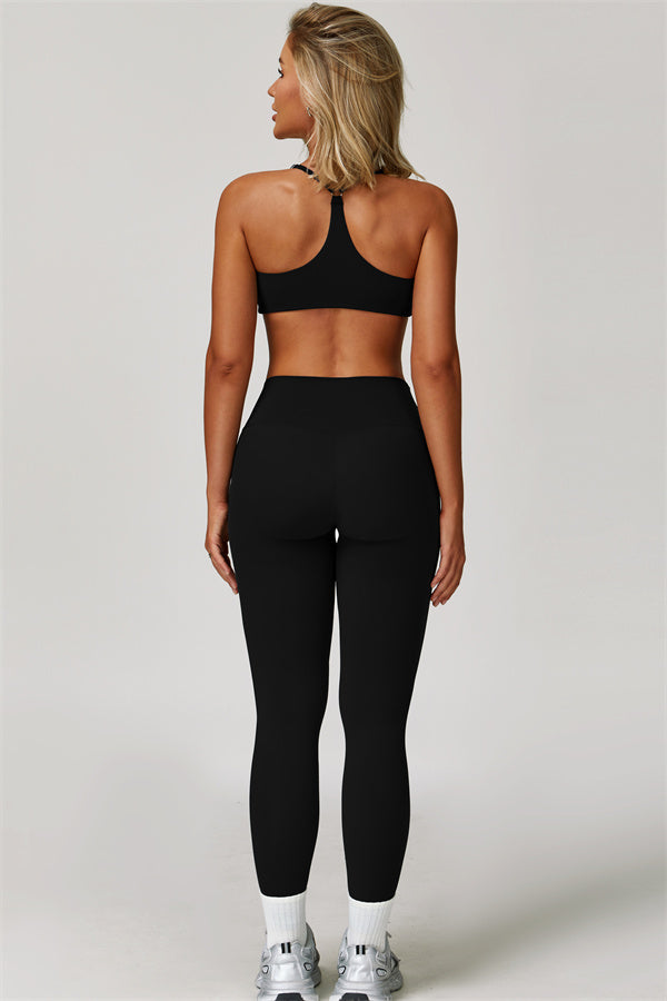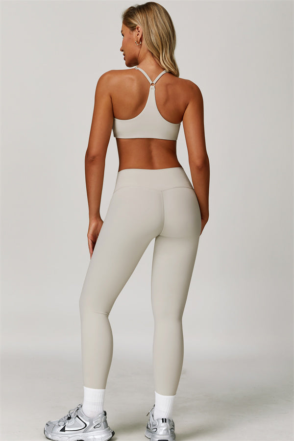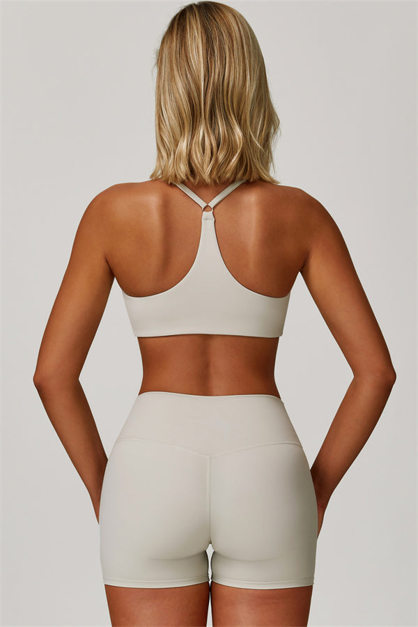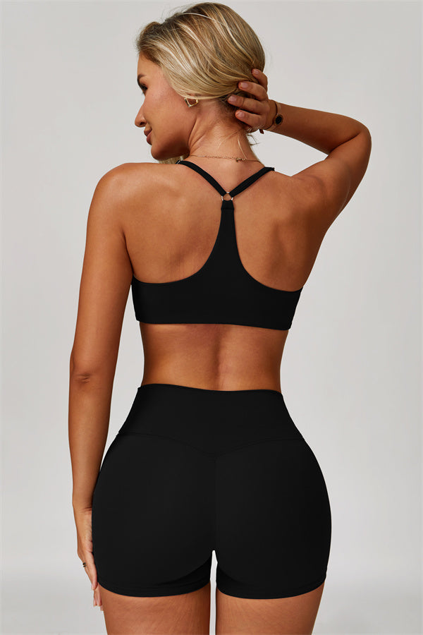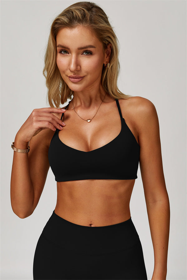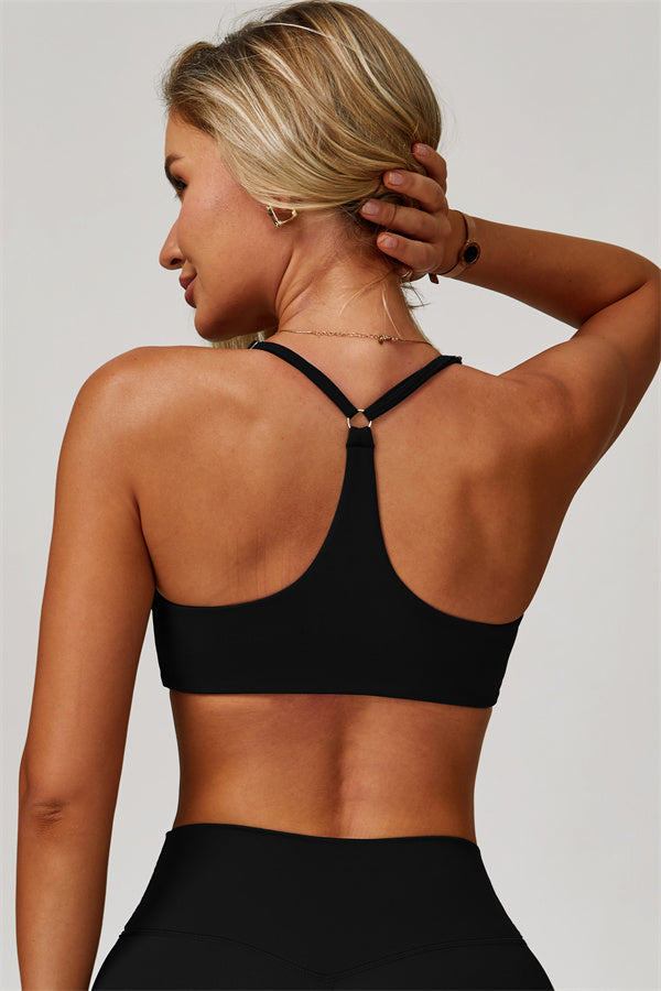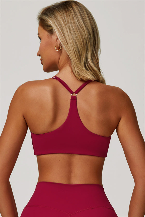 Y-back design highlights the graceful shoulder blades