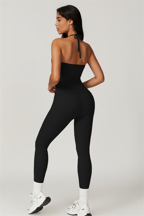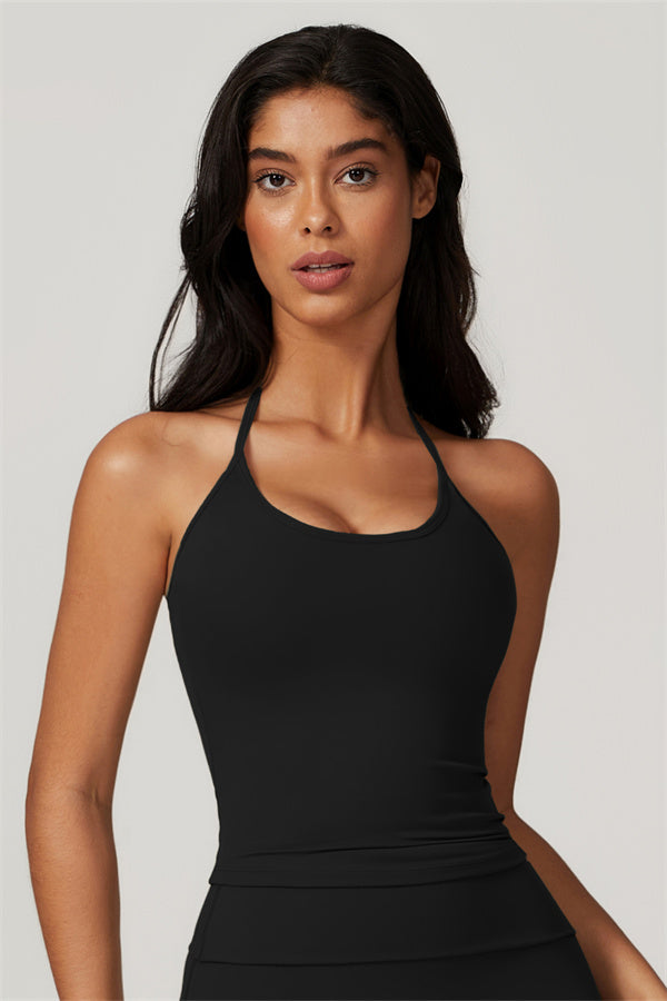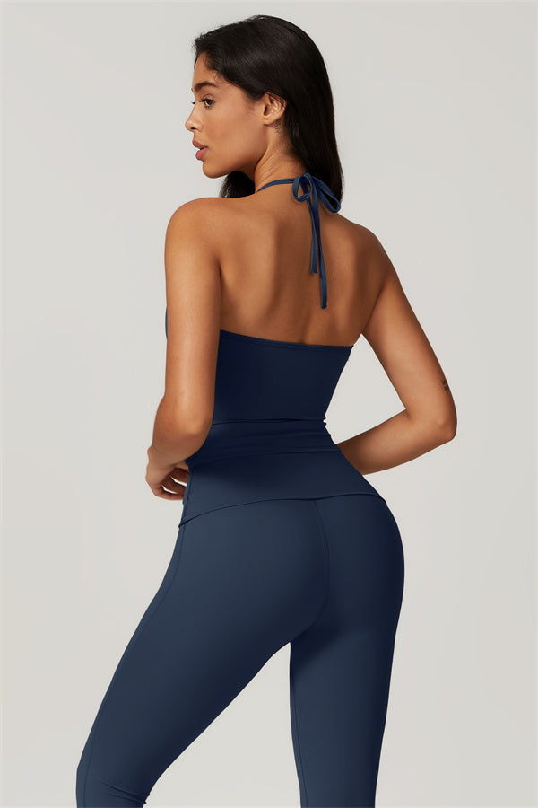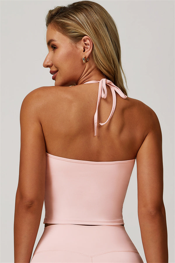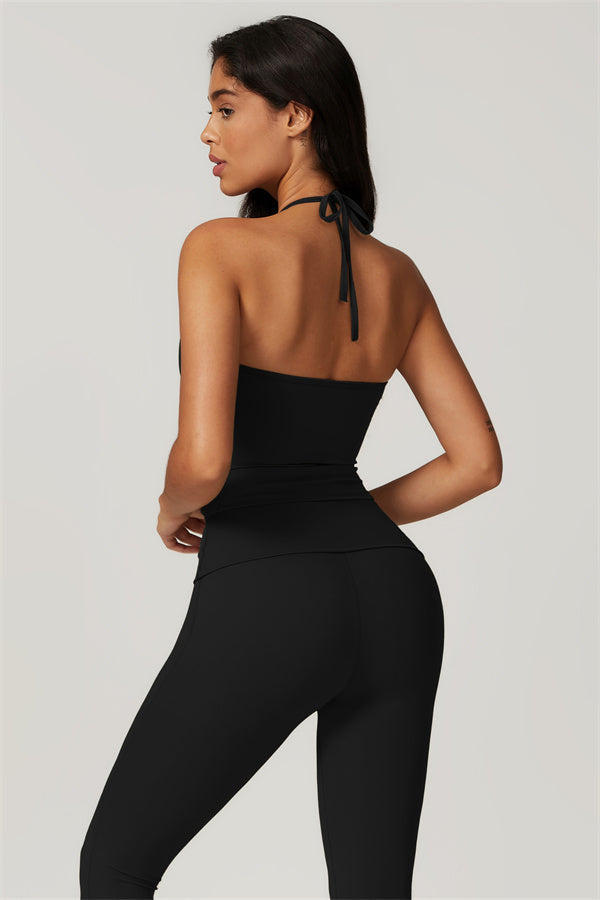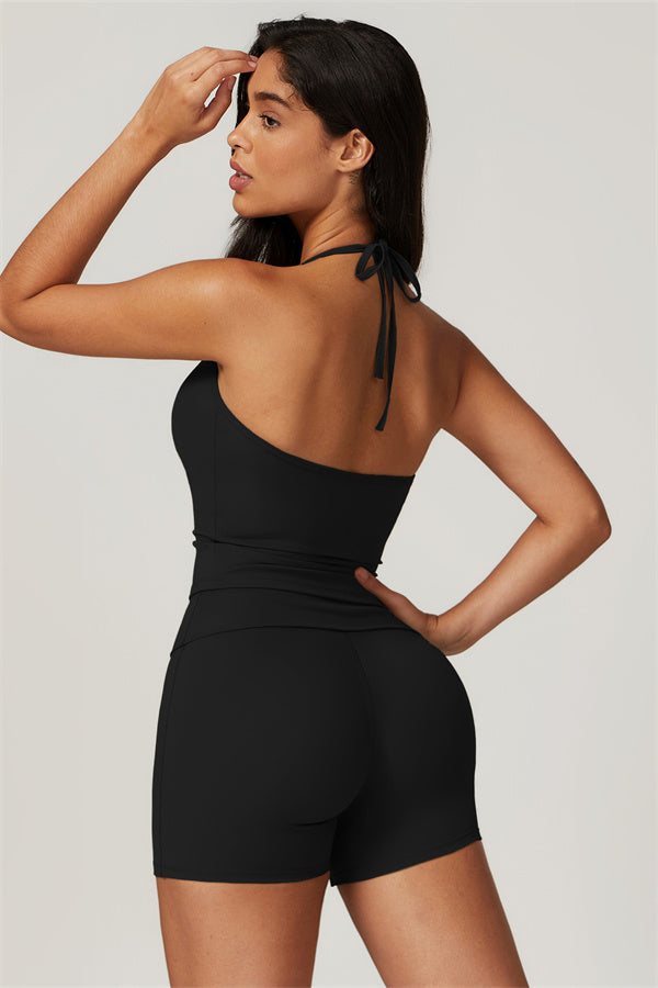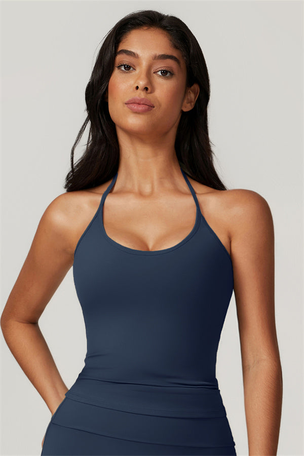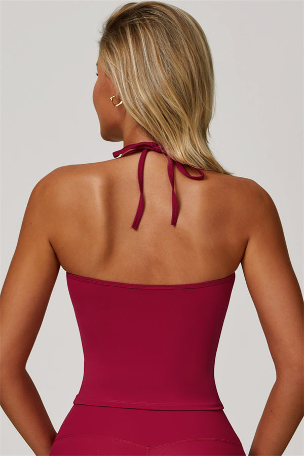 Designed for comfort and a flattering fit, this piece features a gently compressive hem that shapes and sculpts your waist. The chic halter neck with adjustable ties highlights your elegant shoulder blades, adding a touch of sophistication to your look.