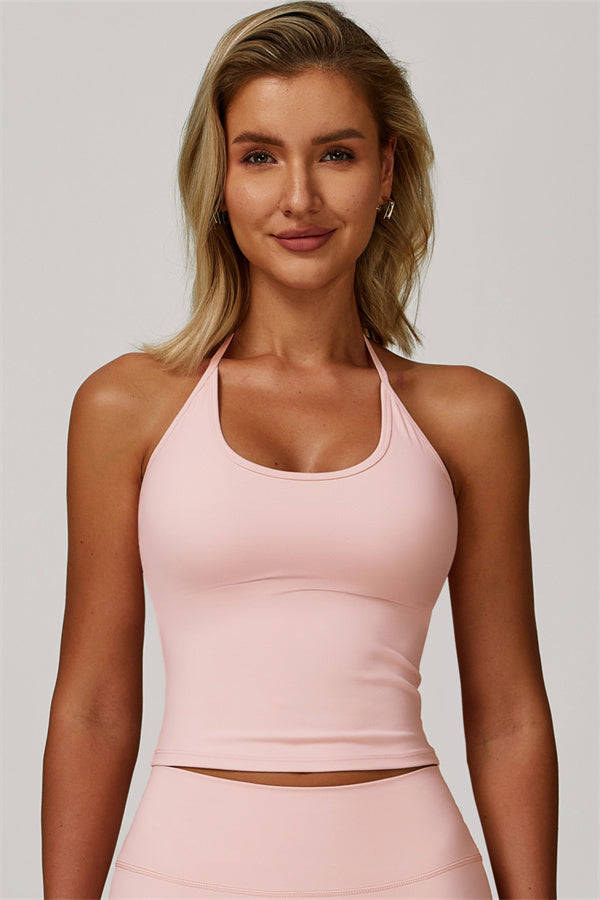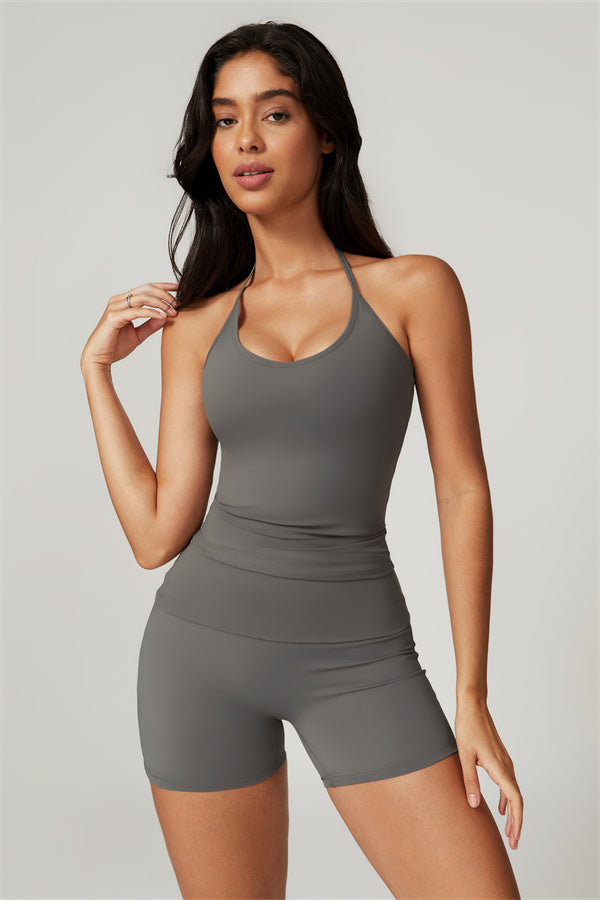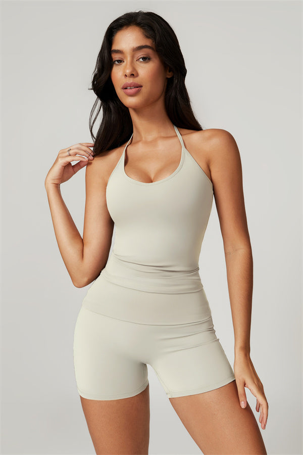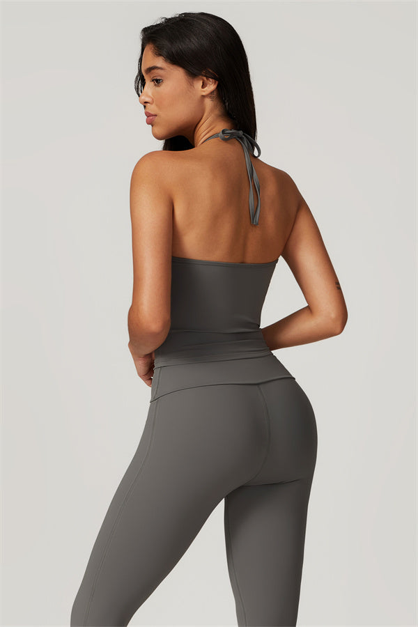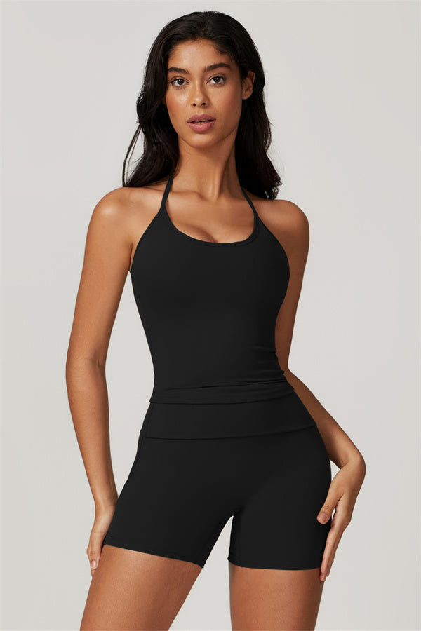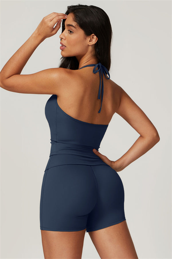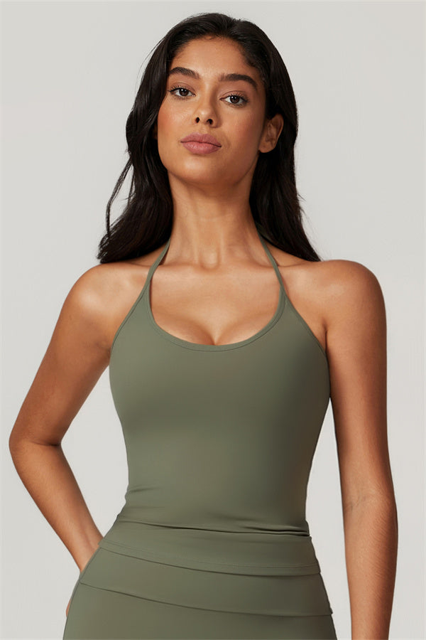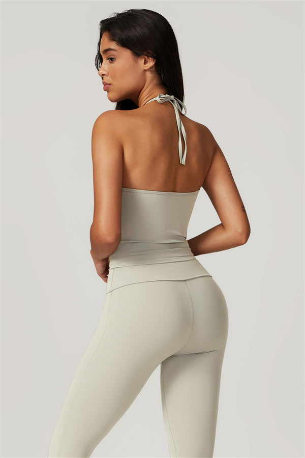 Designed for comfort and a flattering fit, this piece features a gently compressive hem that shapes and sculpts your waist. The chic halter neck with adjustable ties highlights your elegant shoulder blades, adding a touch of sophistication to your look.