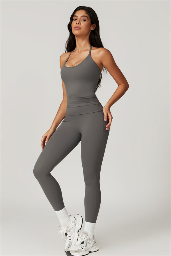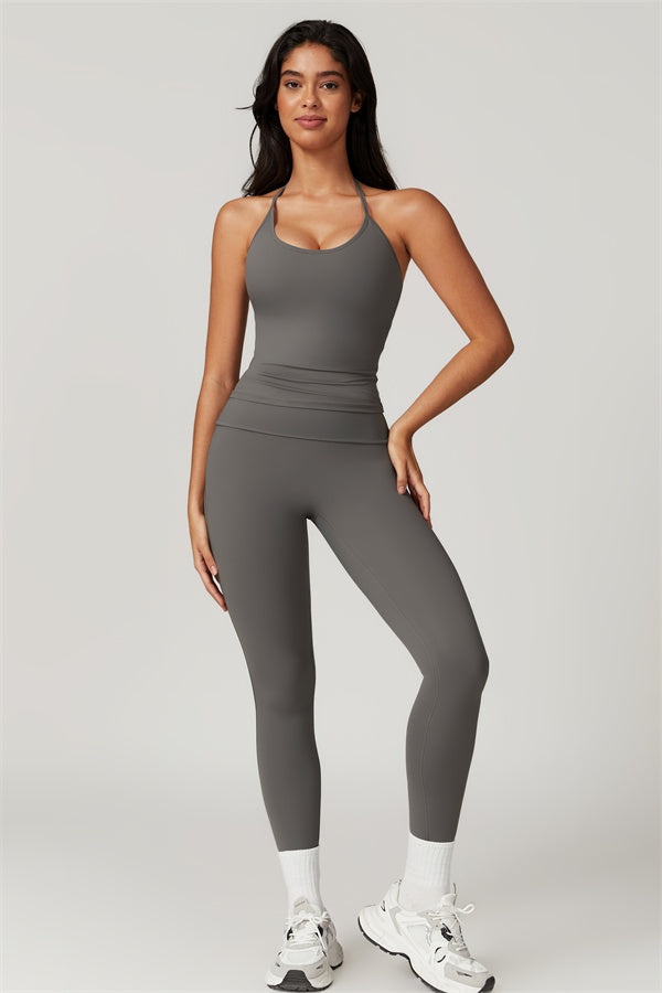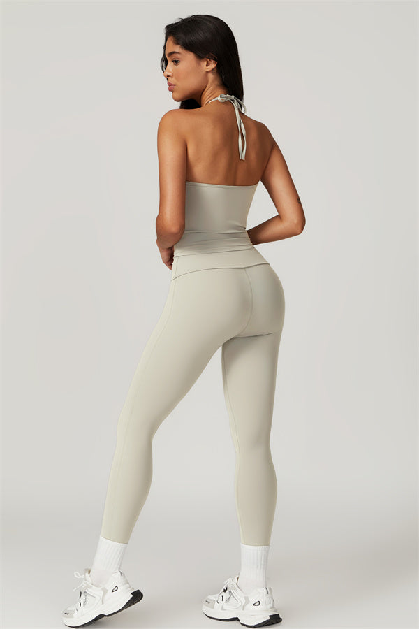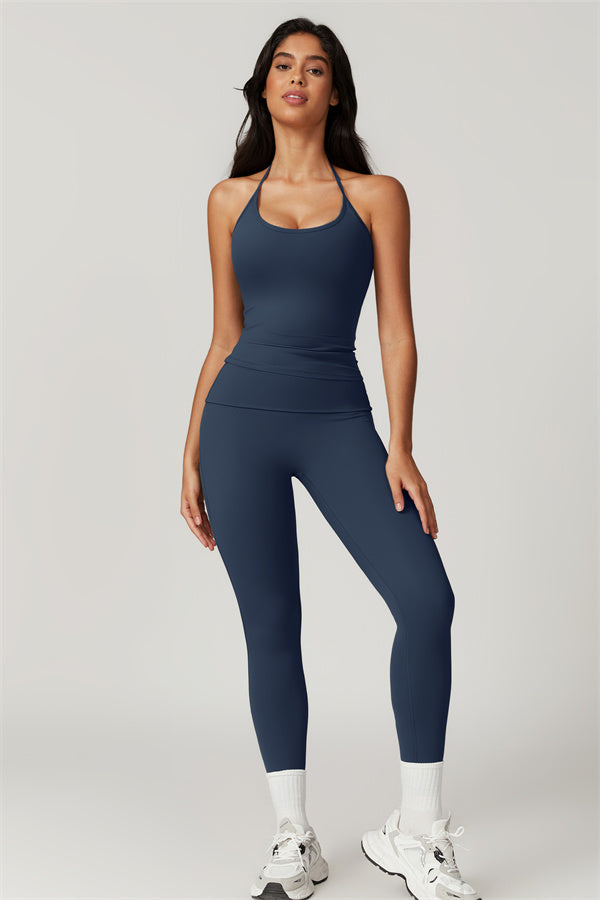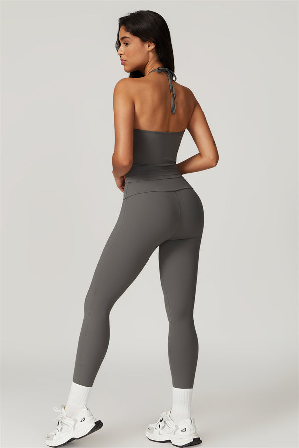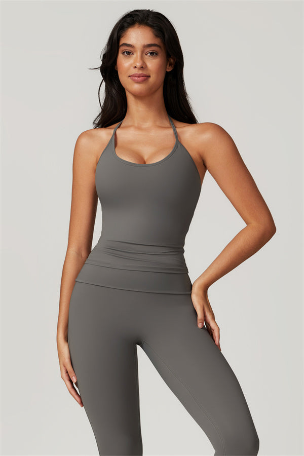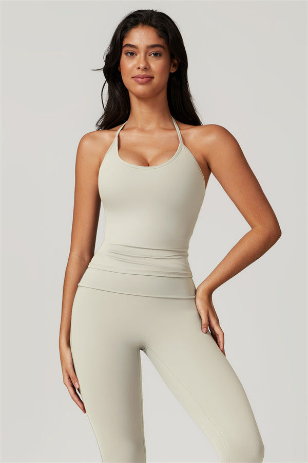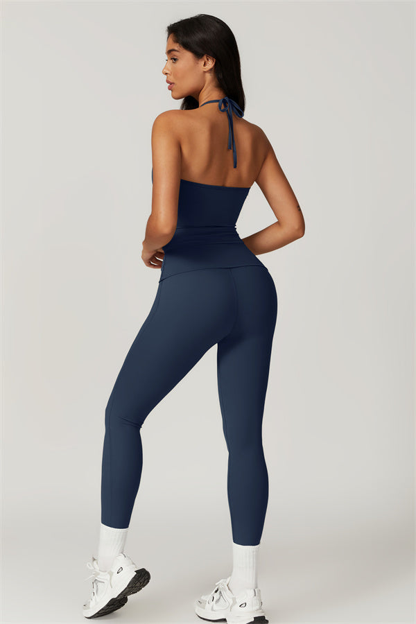 Designed for comfort and a flattering fit, this piece features a gently compressive hem that shapes and sculpts your waist. The chic halter neck with adjustable ties highlights your elegant shoulder blades, adding a touch of sophistication to your look.