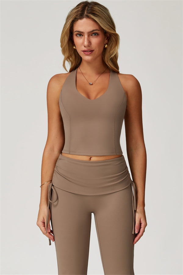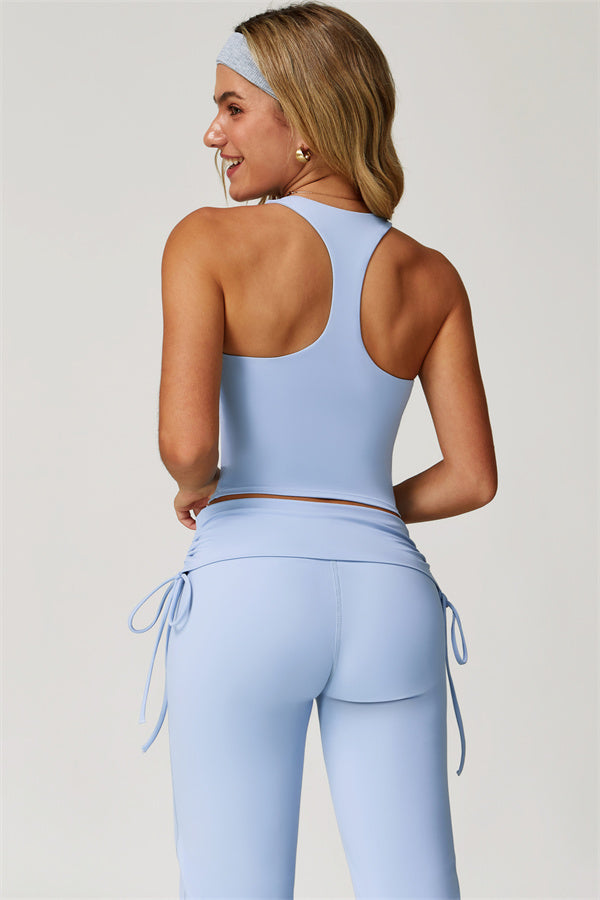 Sculpted racerback design highlights the upper back and butterfly bones