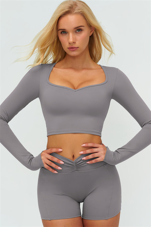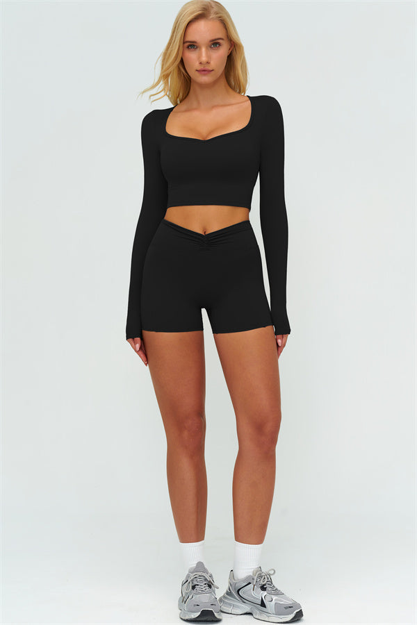 The Lushness Long Sleeve Crop top Shorts 2-Piece Set