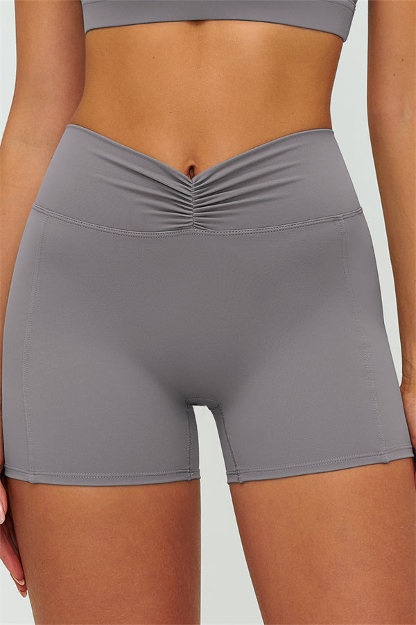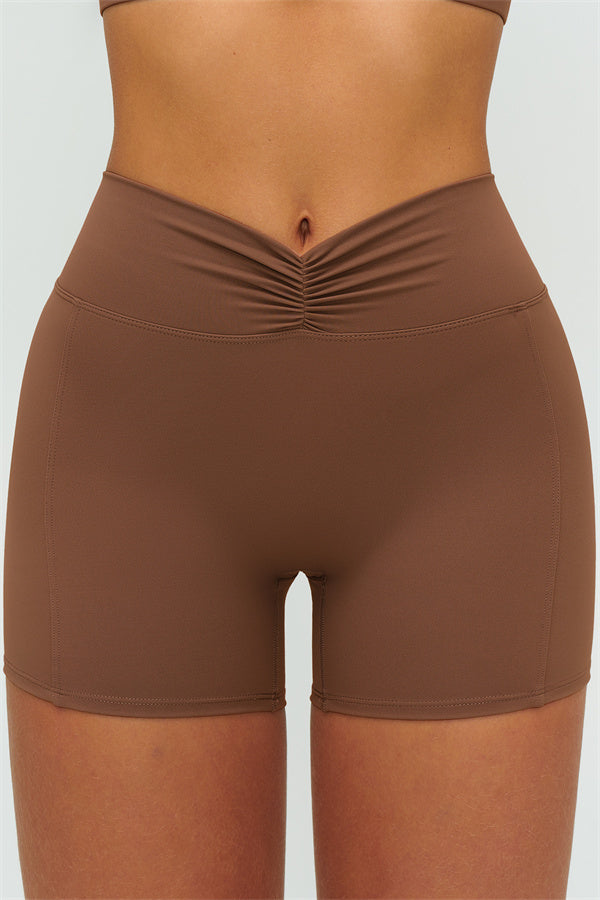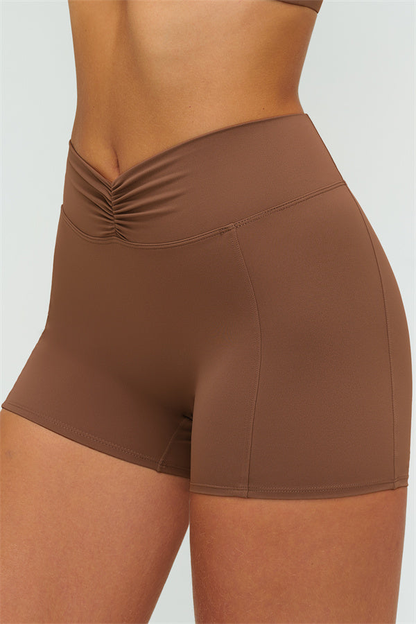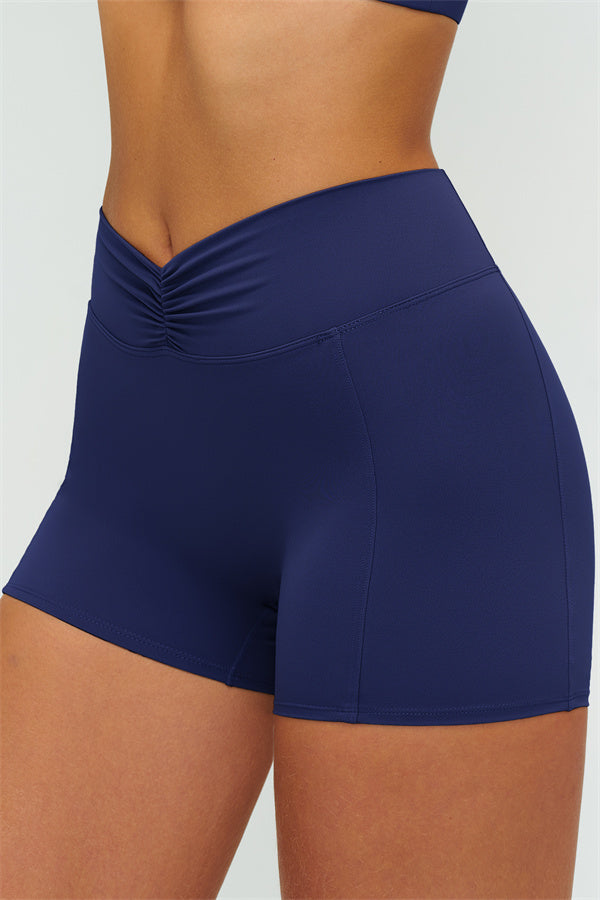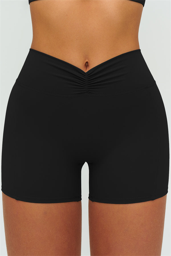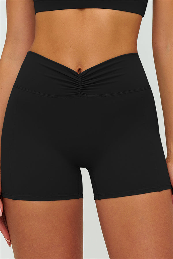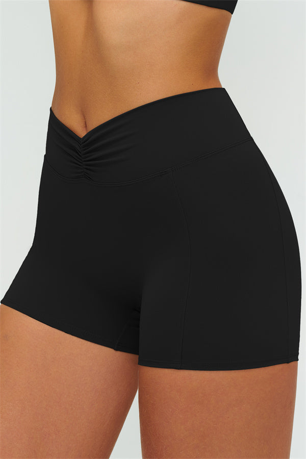 • High-waist ruched front smooths the tummy and locks in the waist
