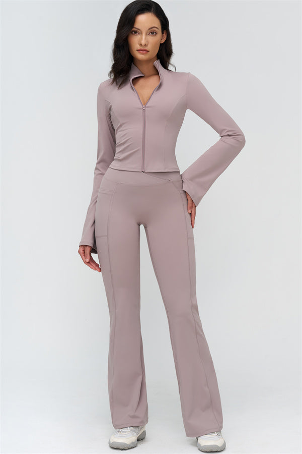 Finished with elongated flared cuffs for a touch of movement and elegance, this jacket transitions seamlessly from workouts to everyday wear, wrapping you in a smooth, second-skin feel.