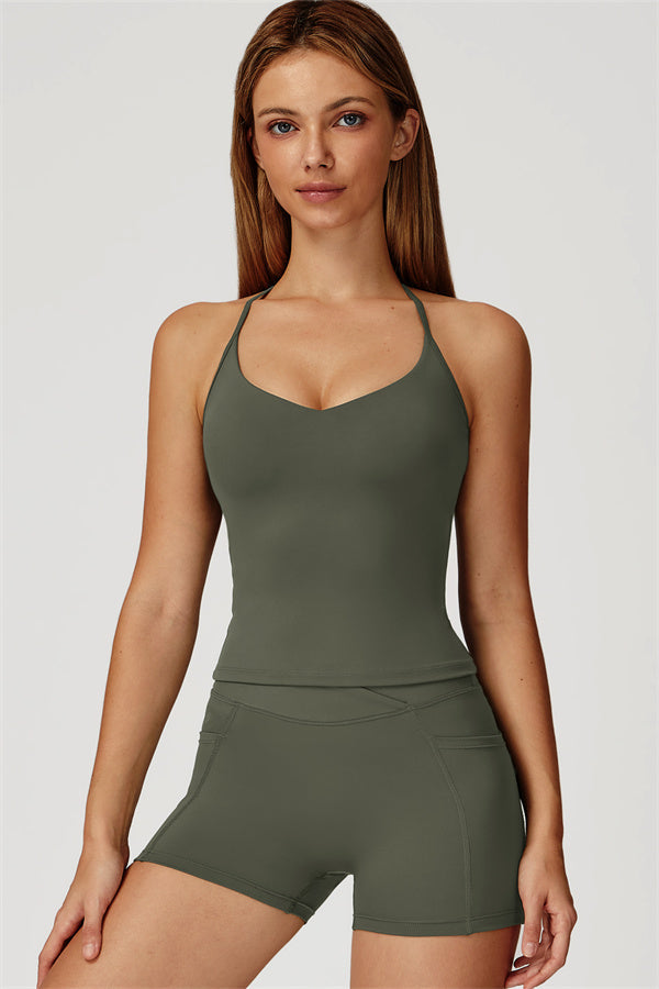 • Thin cross-back straps with cut-out design for a graceful back silhouette