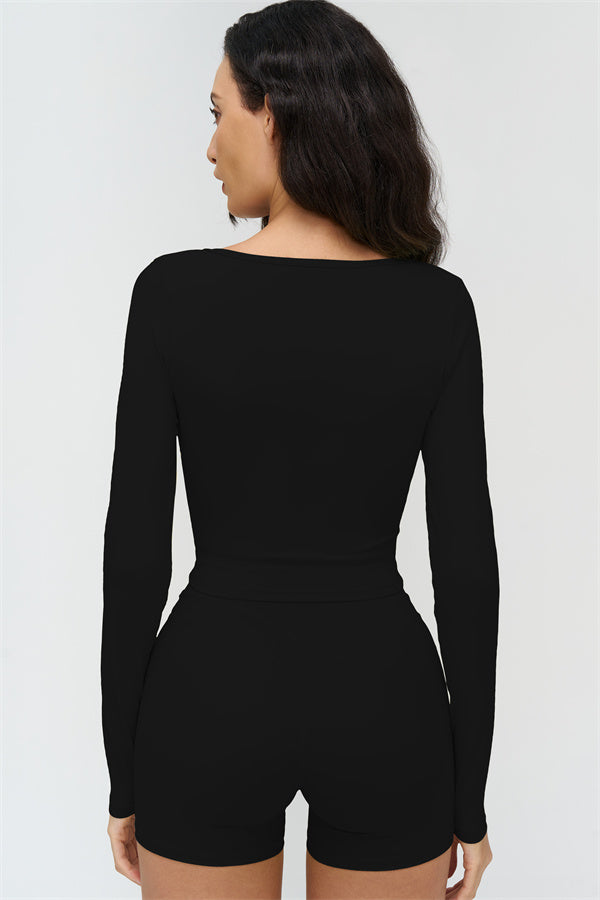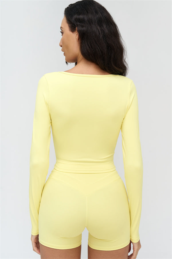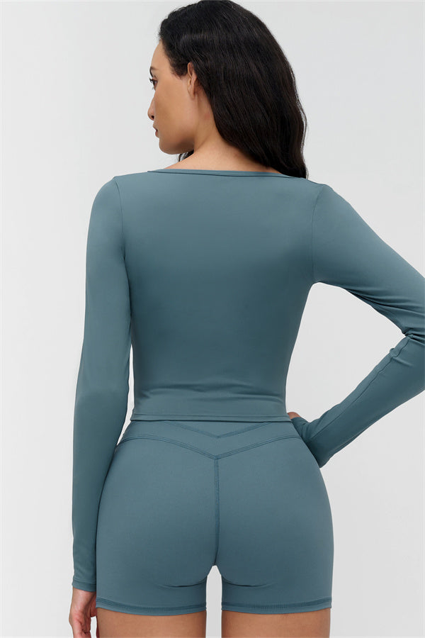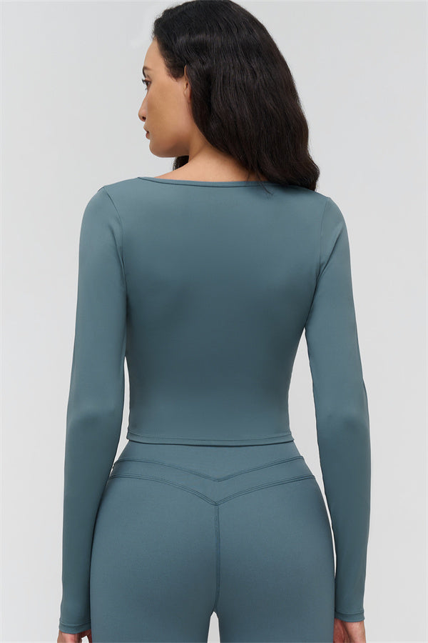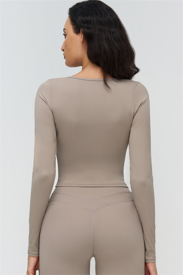 Long sleeves with a waist-length, mid-crop cut to subtly reveal the waistline