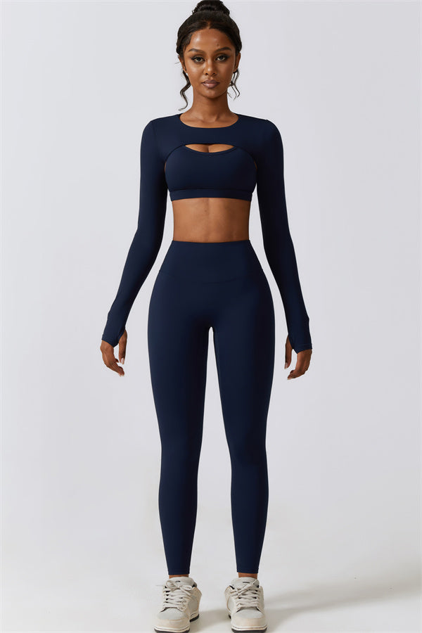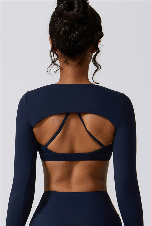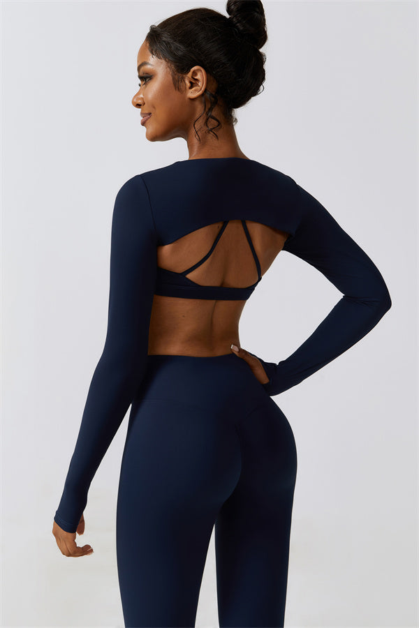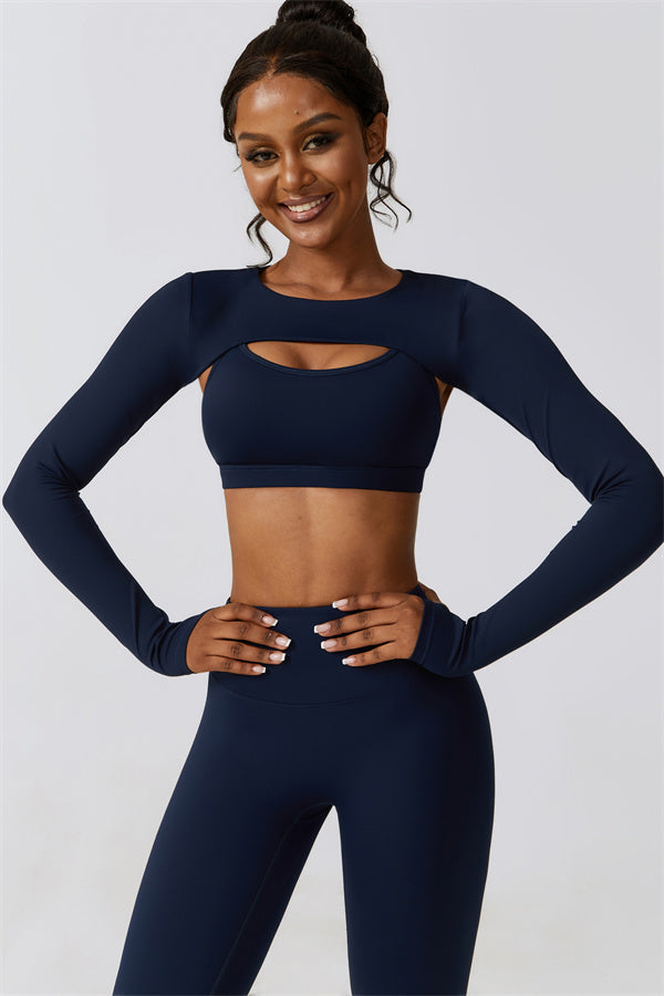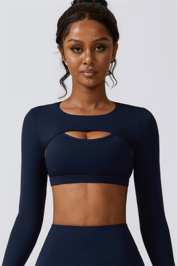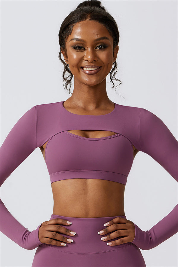 This crop top features a classic round neckline that visually elongates the neck, creating a flattering silhouette. The long-sleeve, sleeveless design accentuates your shoulders, giving a slimming effect with its elegant, straight-across look.