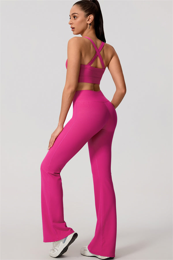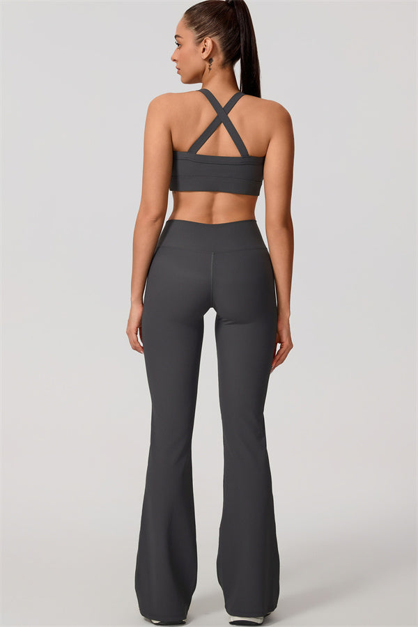 Cross-back design for a chic look that highlights the butterfly bones