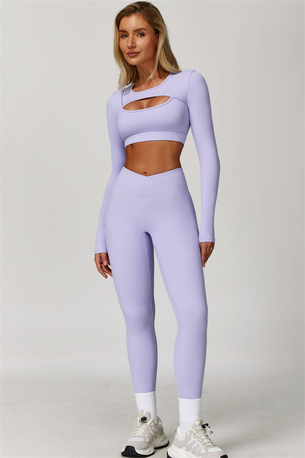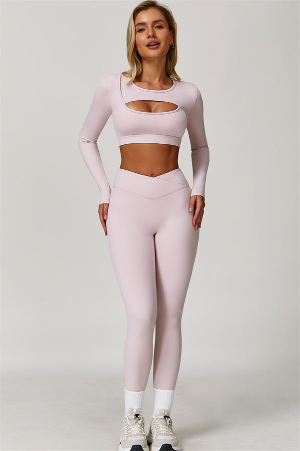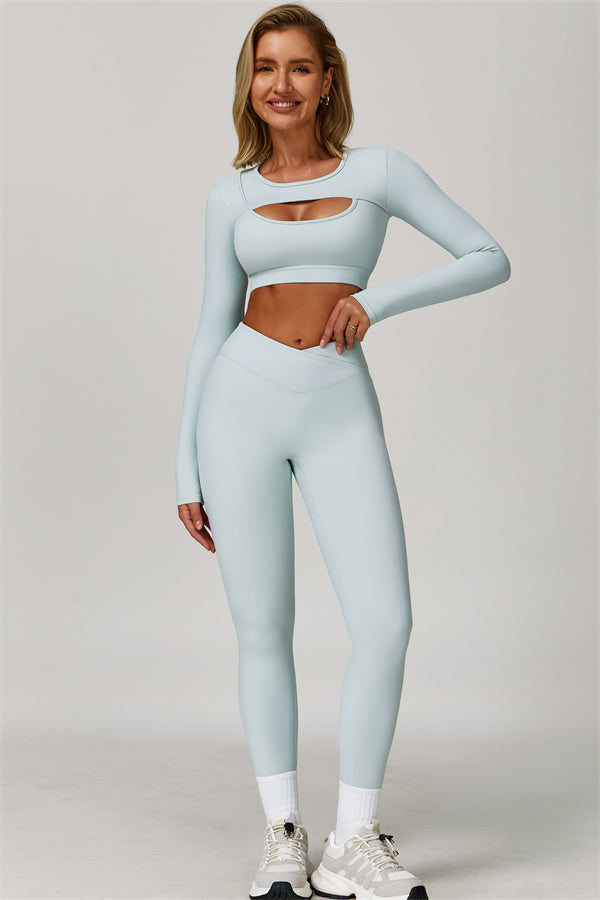 The Lavish Long Sleeve Cut-out Crop Top Leggings 2-Piece Set
