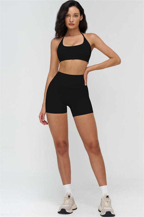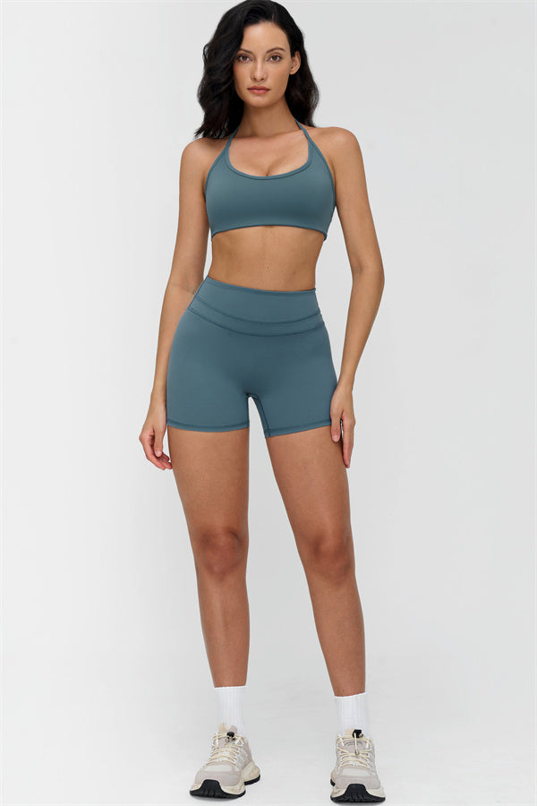 The Stride Halter Sports Bra is designed to highlight your natural curves while delivering comfort and freedom of movement. With a flattering neckline and an open-back design, it's perfect for workouts and everyday wear alike.
