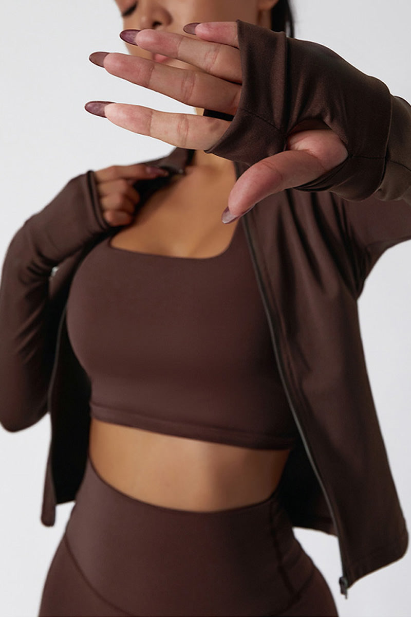 Equipped with thumbhole cuffs, this jacket ensures a secure fit that prevents slipping and keeps your hands protected during intense workouts.
