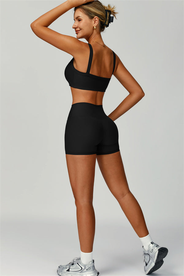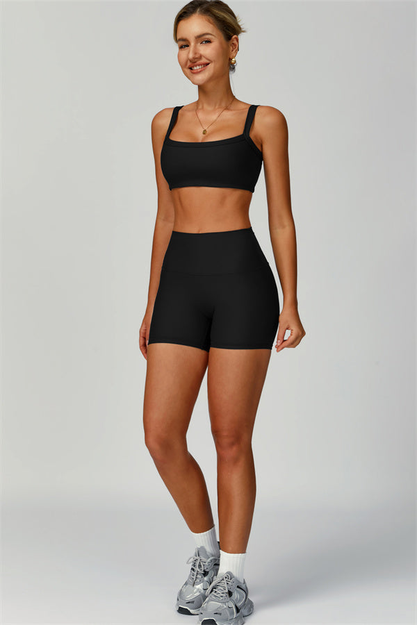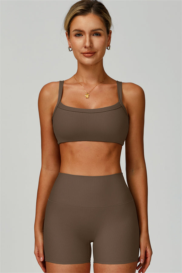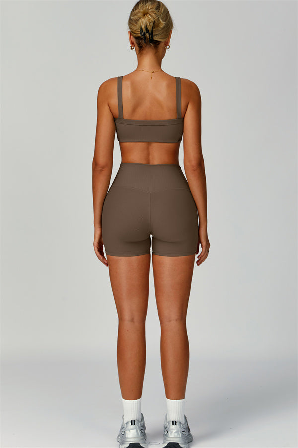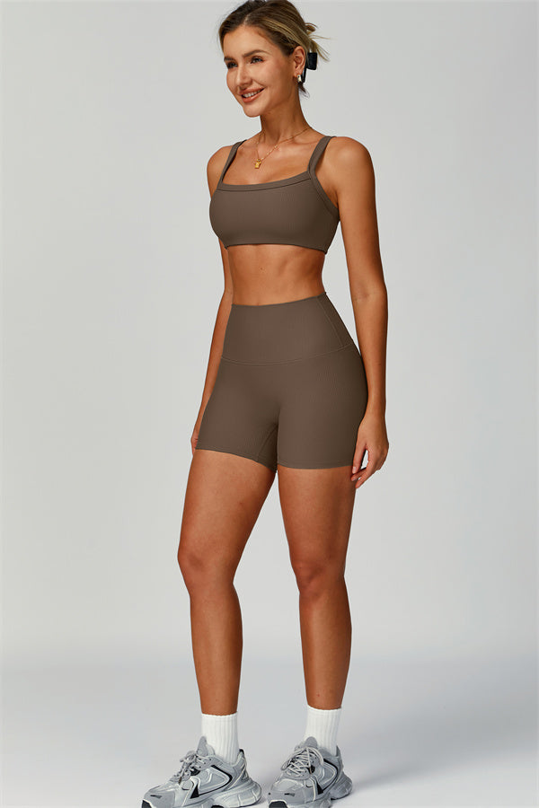 Stay supported and stylish with The Burst Set, designed to highlight your curves and keep you comfortable. This matching set features a square-neck sports bra and high-waisted shorts, both crafted from breathable ribbed fabric with a recycled blend.
