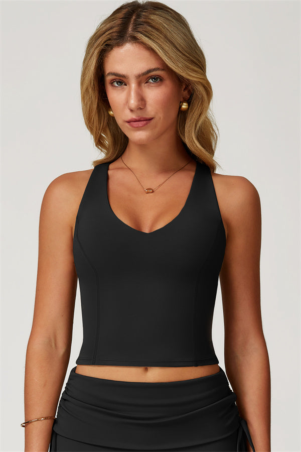 • Racerback cut shows off the upper back and butterfly bones