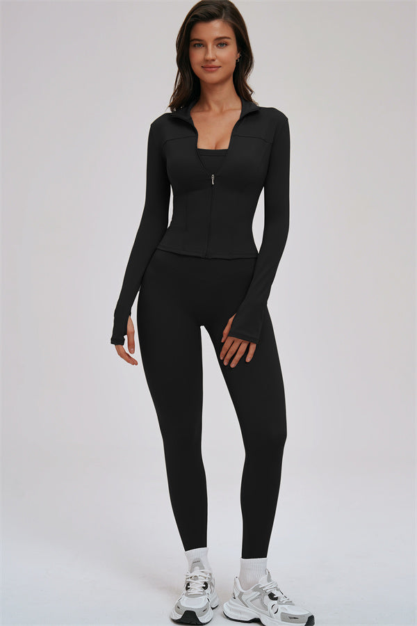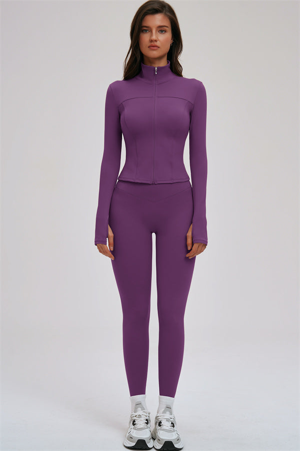 The Kinetic Zip Jacket & Leggings 2-Piece Set – a sleek and supportive matching set designed for performance and style.