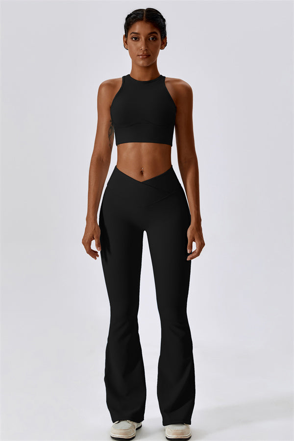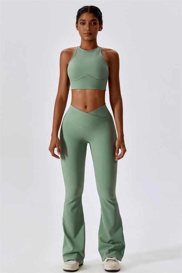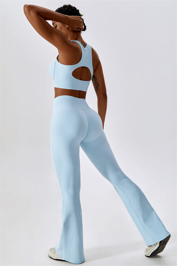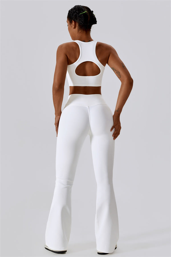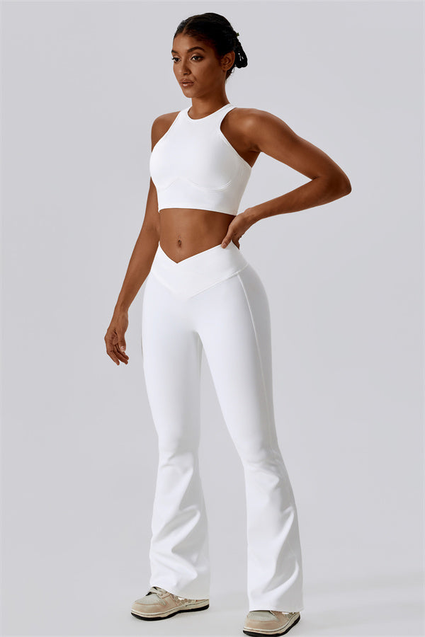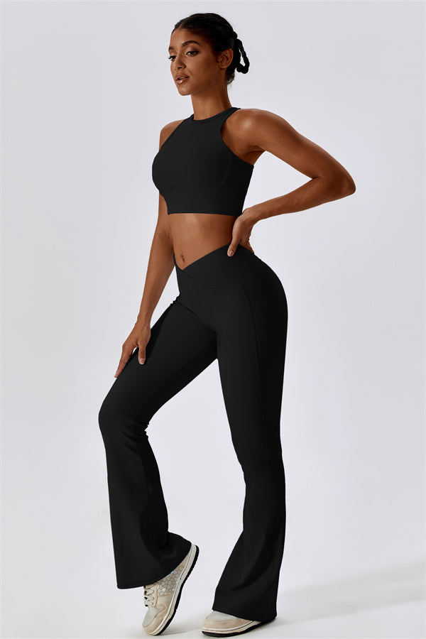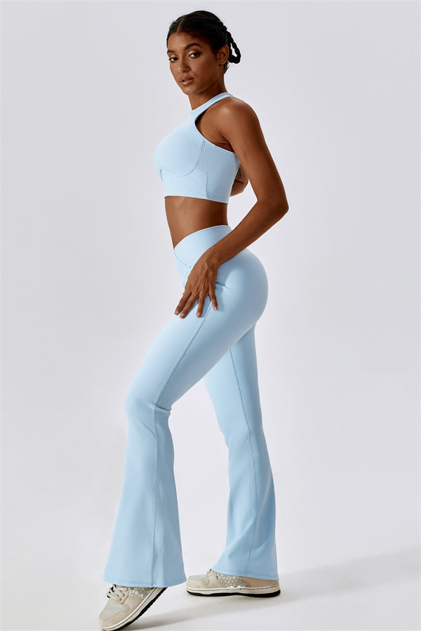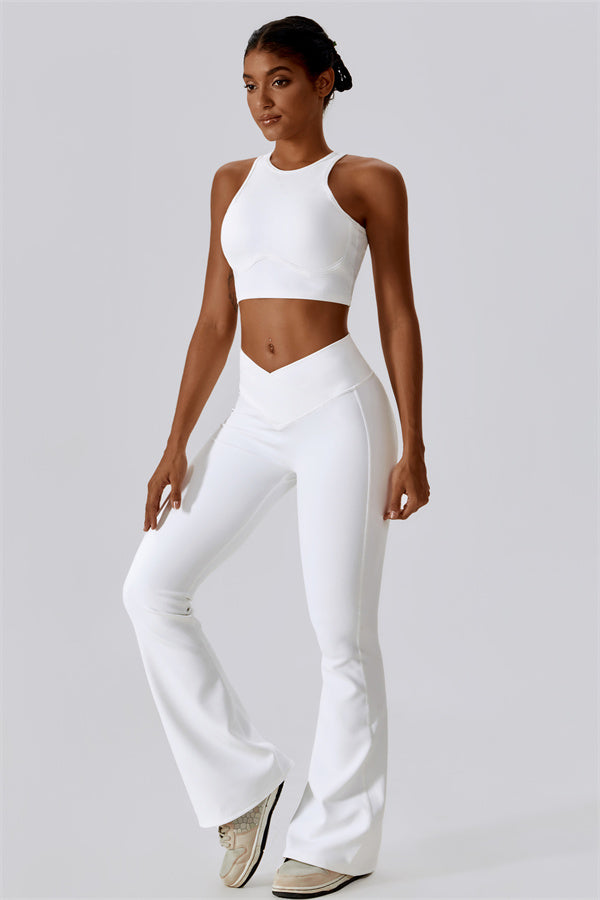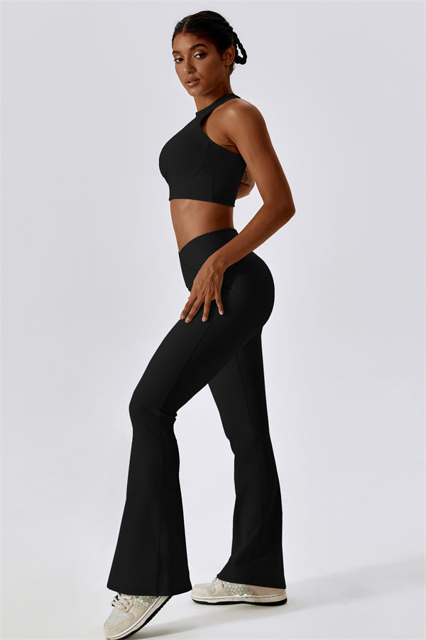 Introducing our stylish flared leggings, designed to elongate your legs and create a sleek silhouette. The unique flared hem enhances your natural shape while providing a chic look that transitions effortlessly from the gym to casual outings.