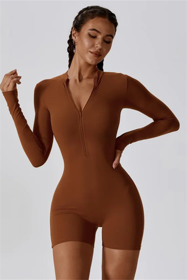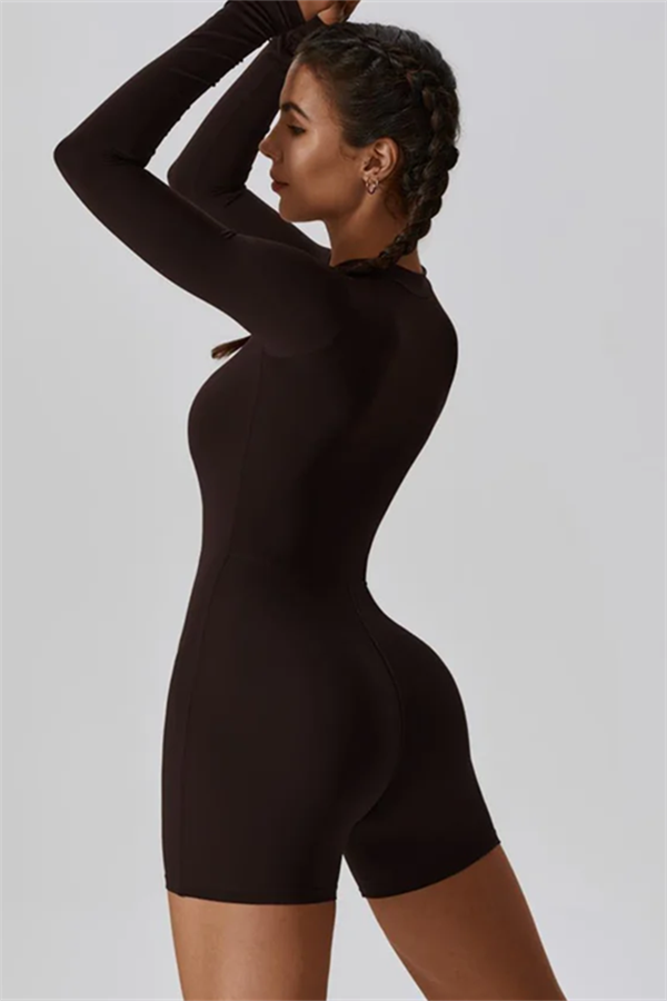 Crafted from a high-quality brushed four-way stretch fabric blend of 78% recycled nylon and 22% spandex, it provides exceptional comfort and flexibility. The soft material allows for easy movement, while the durable construction ensures it stands up to your toughest workouts. Ideal for gym sessions, casual outings, or lounging, this jumpsuit combines functionality and fashion effortlessly.