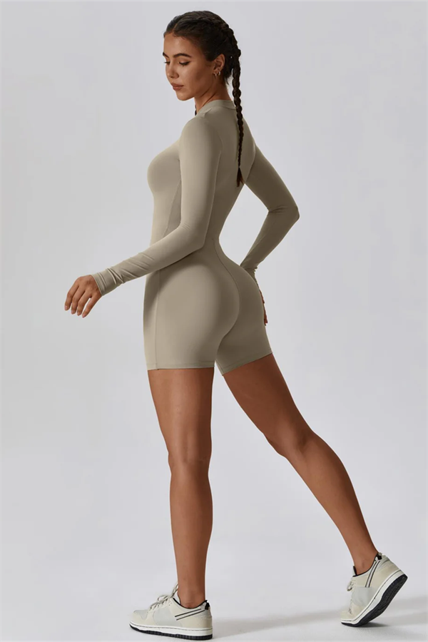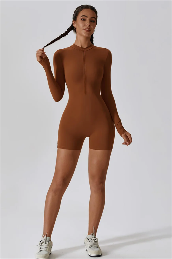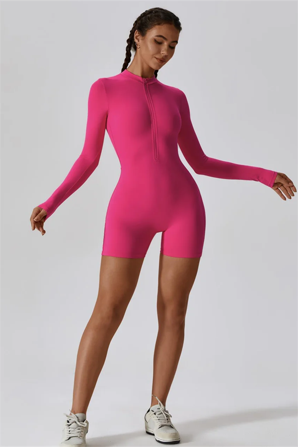 Experience ultimate convenience and style with our Half-Zip Stand-Up Collar Jumpsuit. The practical half-zip design allows for easy on and off, making it perfect for those busy days or post-workout changes. Featuring extended cuffs, this jumpsuit offers comprehensive grip protection for your hands, ensuring a secure fit during all activities.