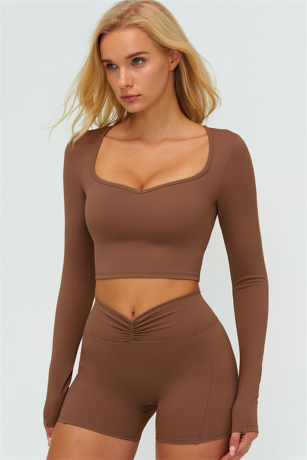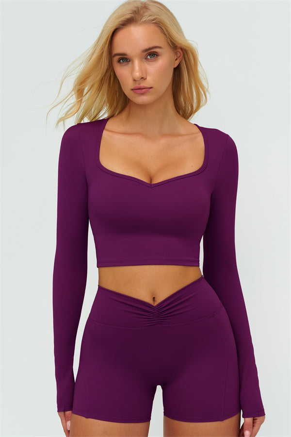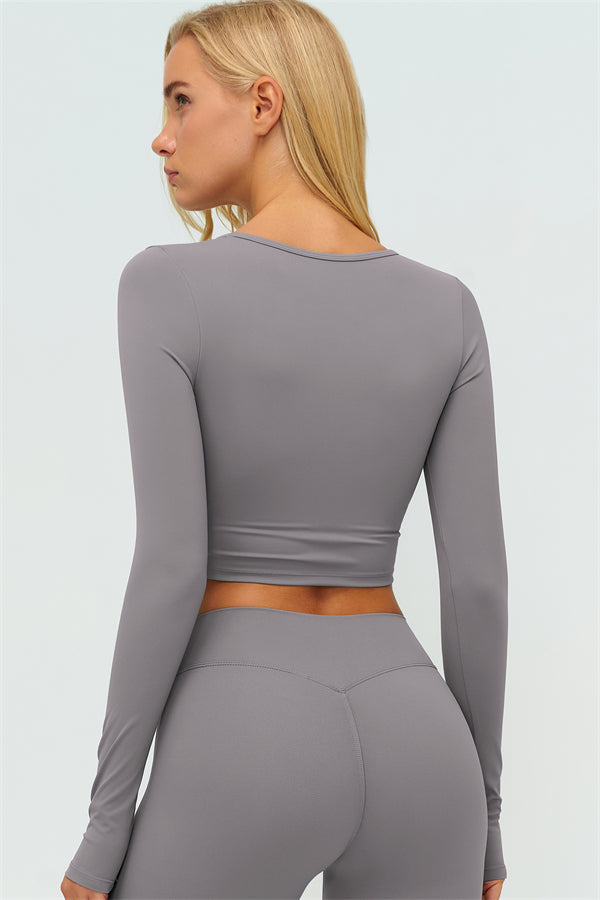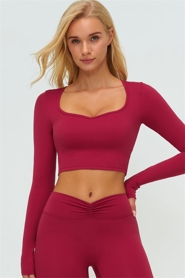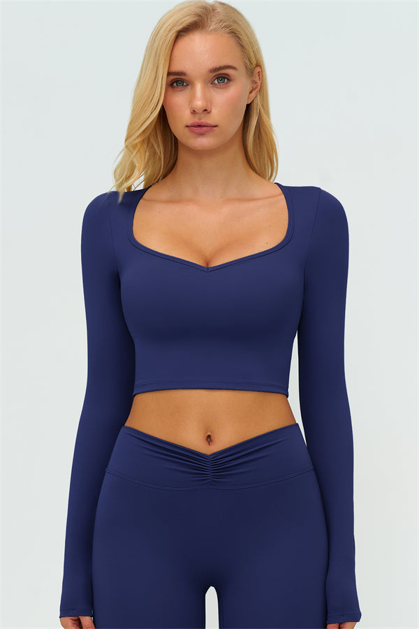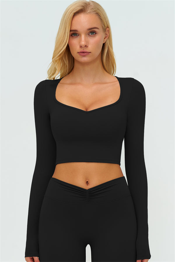 Stay stylish and supported with the Lushness Long Sleeve Crop Top. Featuring a subtle V-cutout design, it highlights your collarbones and visually elongates the neck. The removable chest pad ensures you can wear it without a bra, perfect for workouts or street style. Thumbhole cuffs keep sleeves in place and provide full hand coverage during movement.