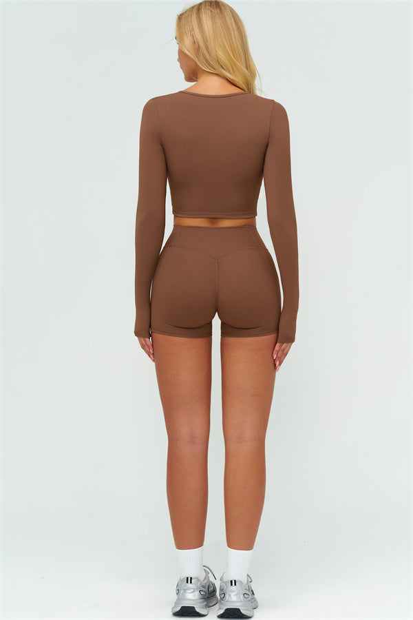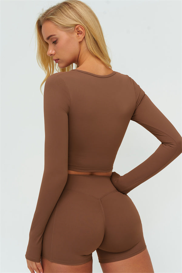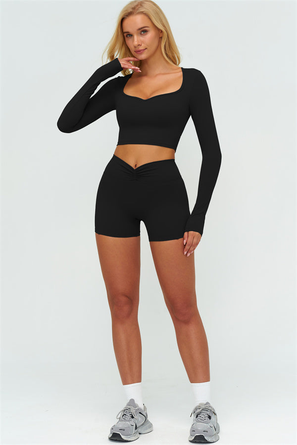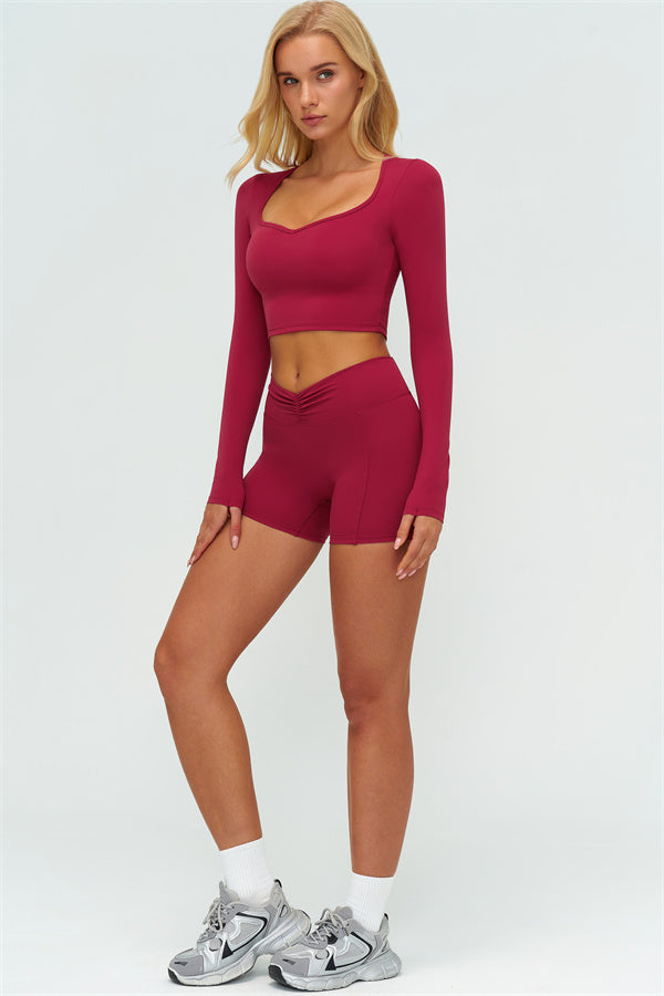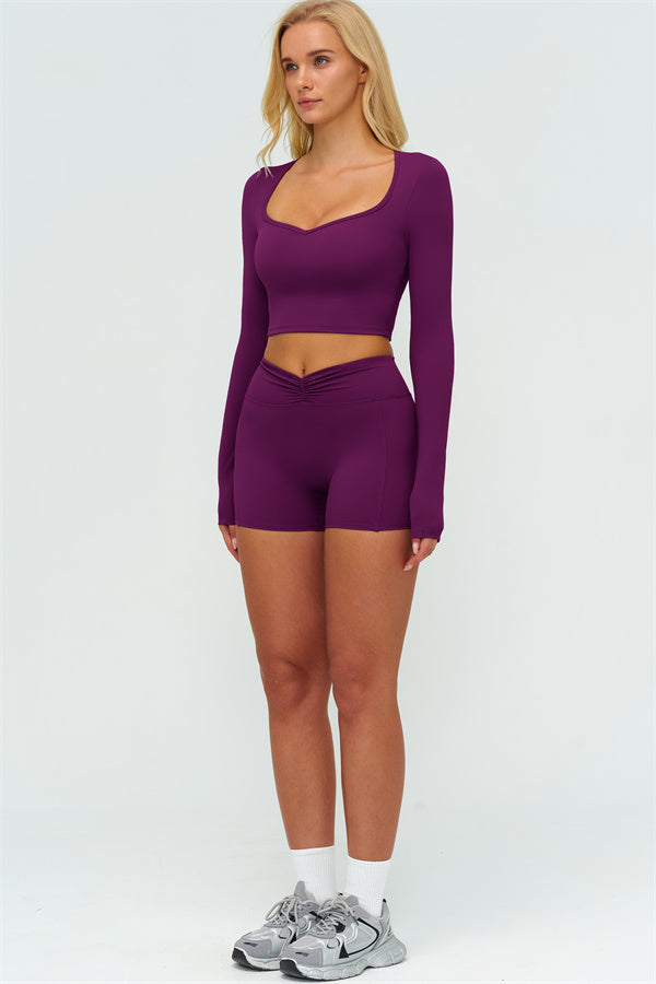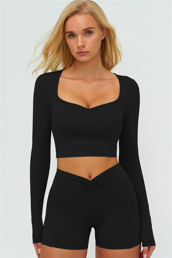 Stay stylish and supported with the Lushness Long Sleeve Crop Top. Featuring a subtle V-cutout design, it highlights your collarbones and visually elongates the neck. The removable chest pad ensures you can wear it without a bra, perfect for workouts or street style. Thumbhole cuffs keep sleeves in place and provide full hand coverage during movement.