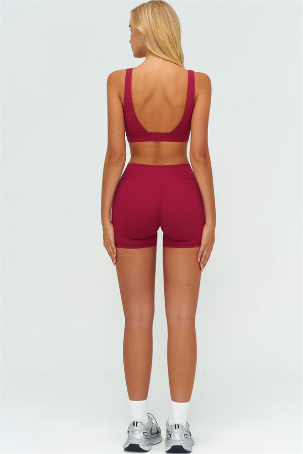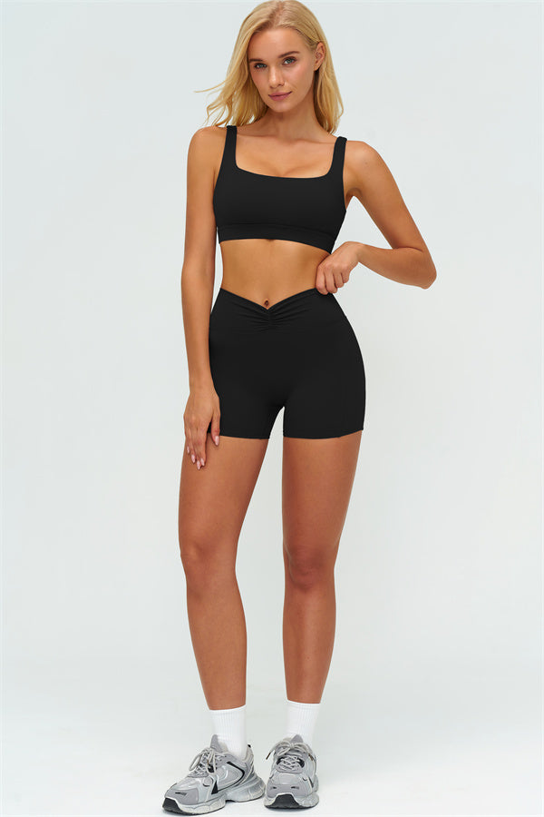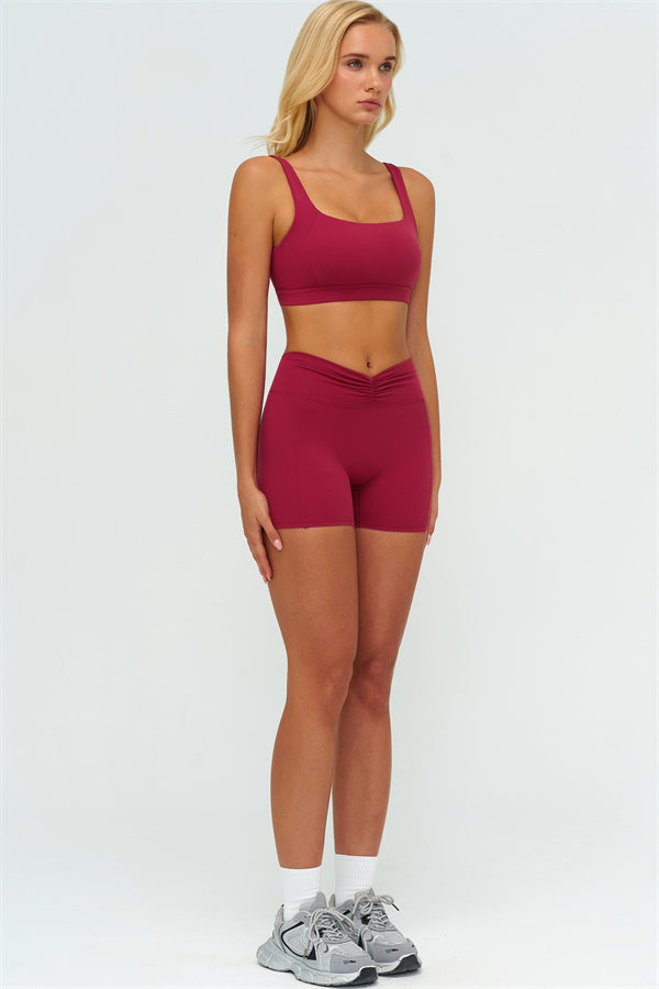 Designed to sculpt, support, and elevate your natural lines, The Lushness V-Back Sports Bra blends style and performance in perfect balance. Its structured neckline and geometric open-back design create a refined, feminine silhouette, ideal for training or casual wear.
