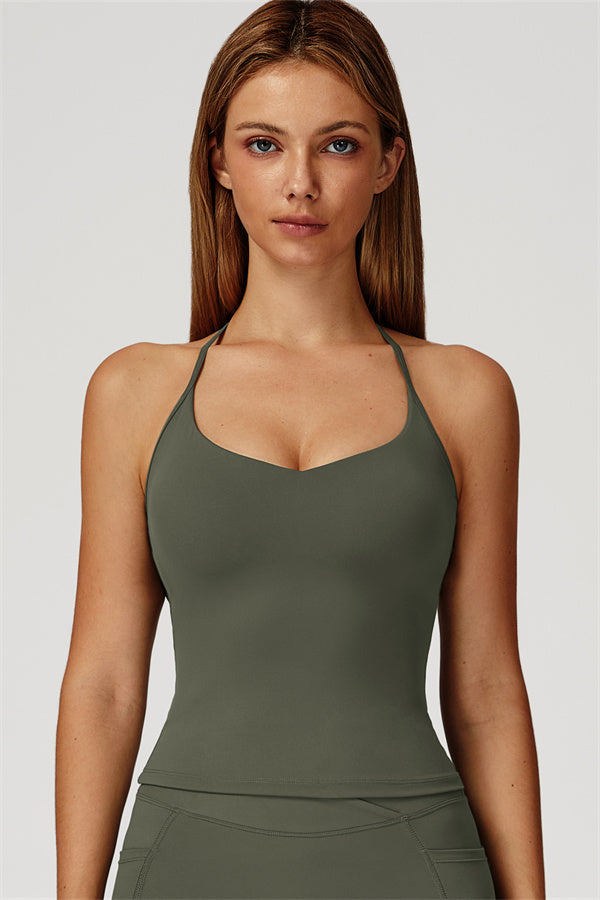 Thin cross-back straps with cut-out design for a graceful back silhouette