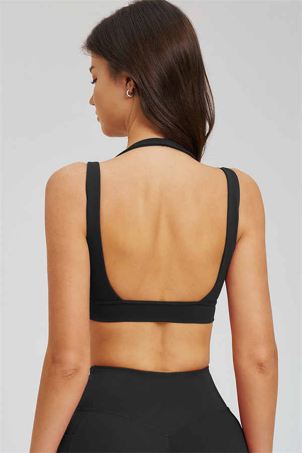 • Halter-style straps evenly distribute shoulder pressure for all-day comfort