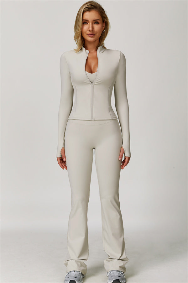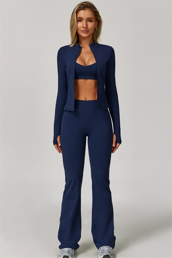 The Refresh Jacket Sports Bra Flared Leggings 3-Piece Set