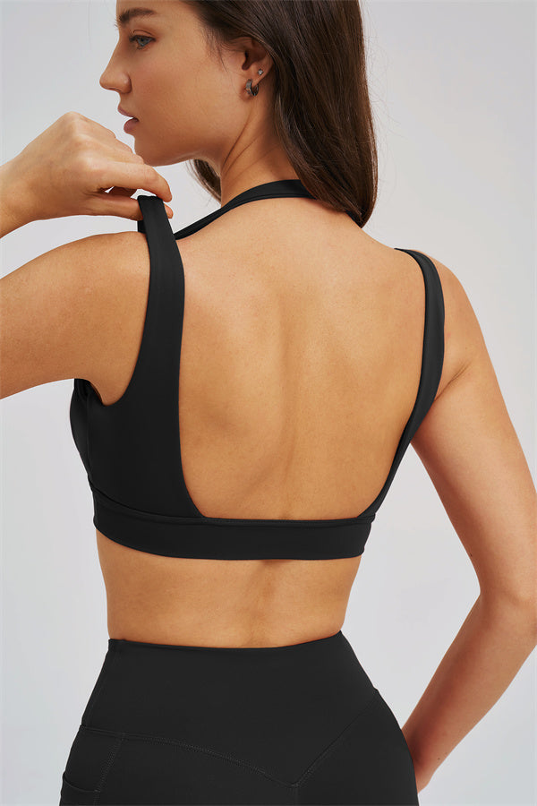• Halter-style straps distribute shoulder pressure evenly for comfort