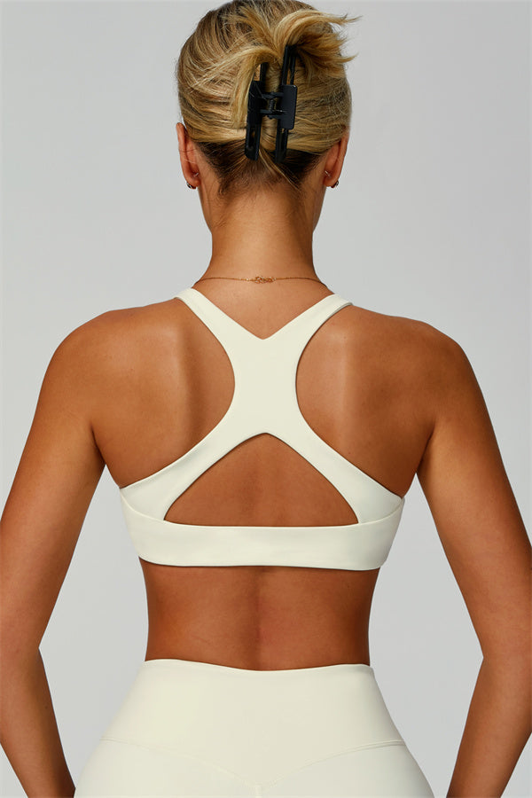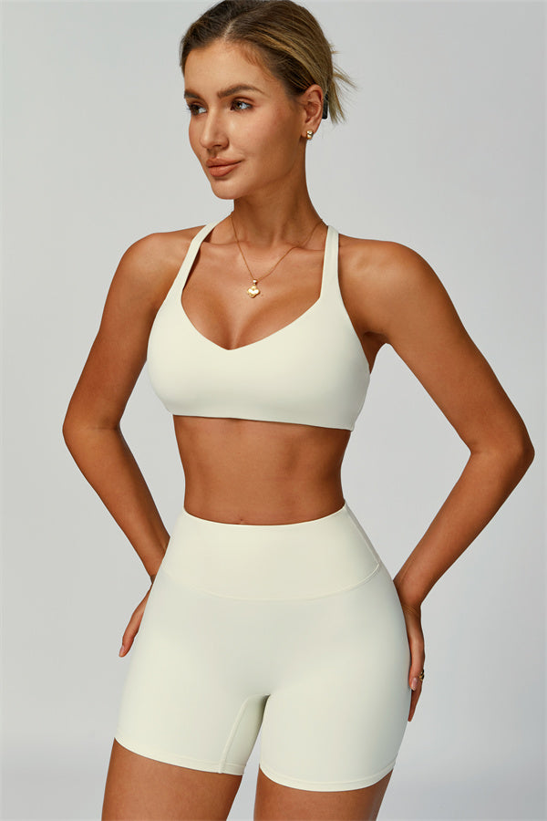 X-shaped open back design frees shoulder blades and reveals a beautiful back line