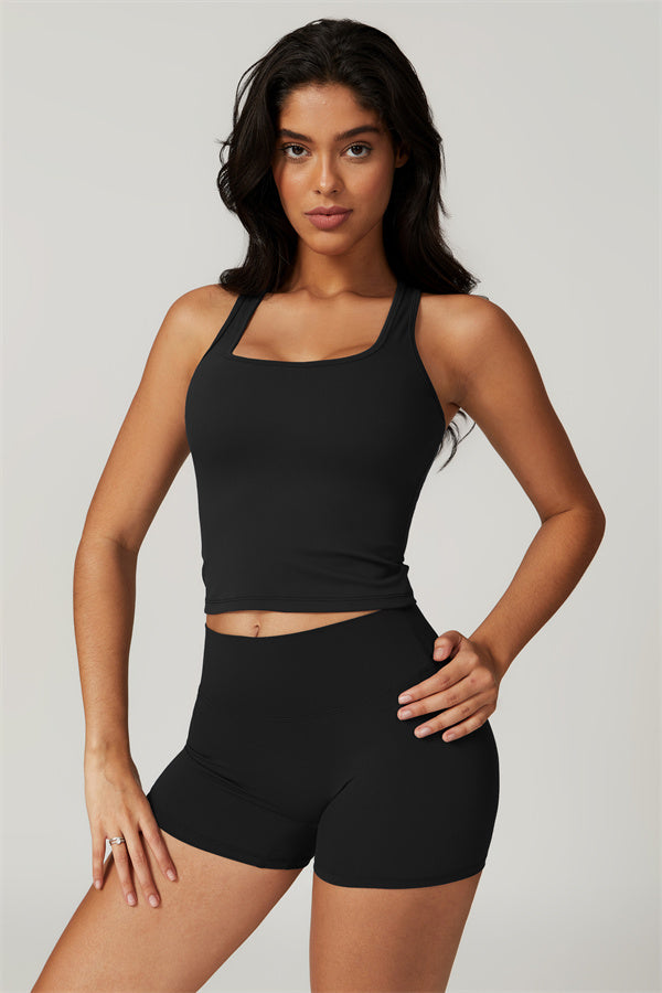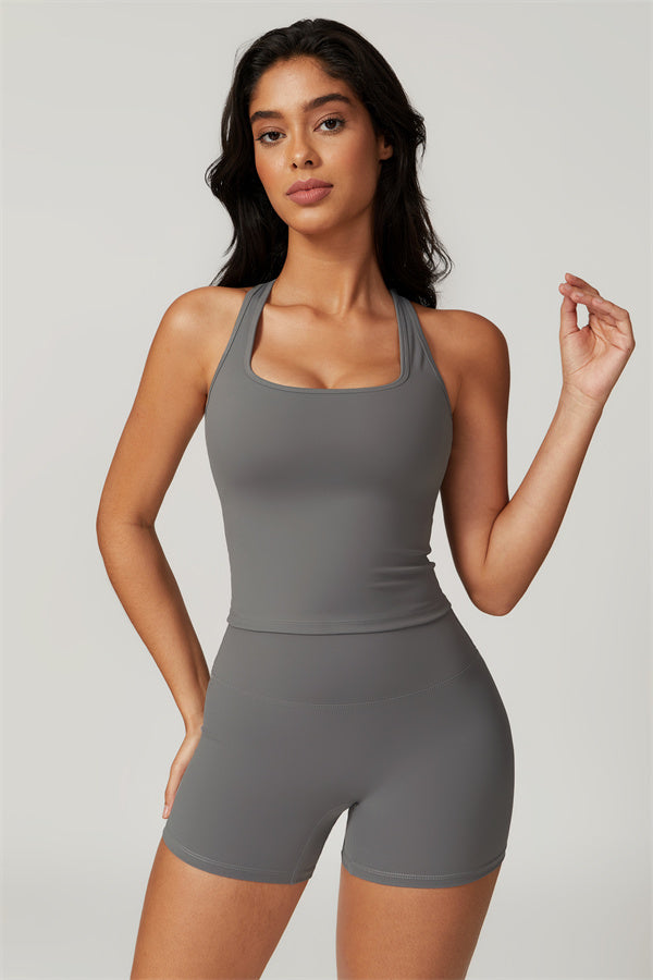 - Racerback Design: A sculpted racerback design highlights the shoulder blades, offering both aesthetic appeal and freedom of movement.
