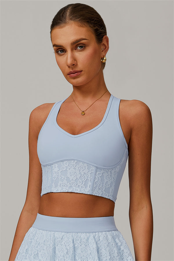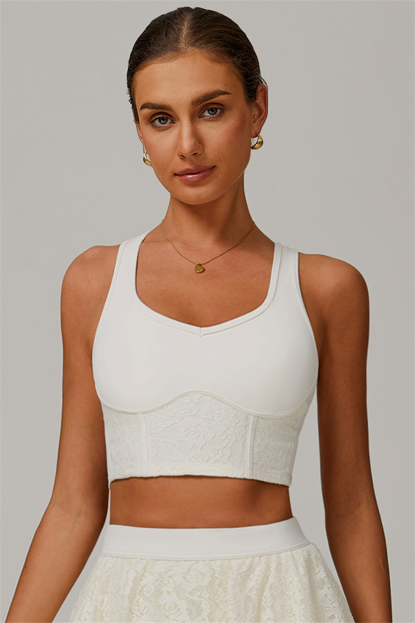 The Wonder Crop Top combines elegance and performance, perfect for both workouts and street style. With a vintage rose lace design and modern construction, this crop top will give you confidence and comfort wherever you go.